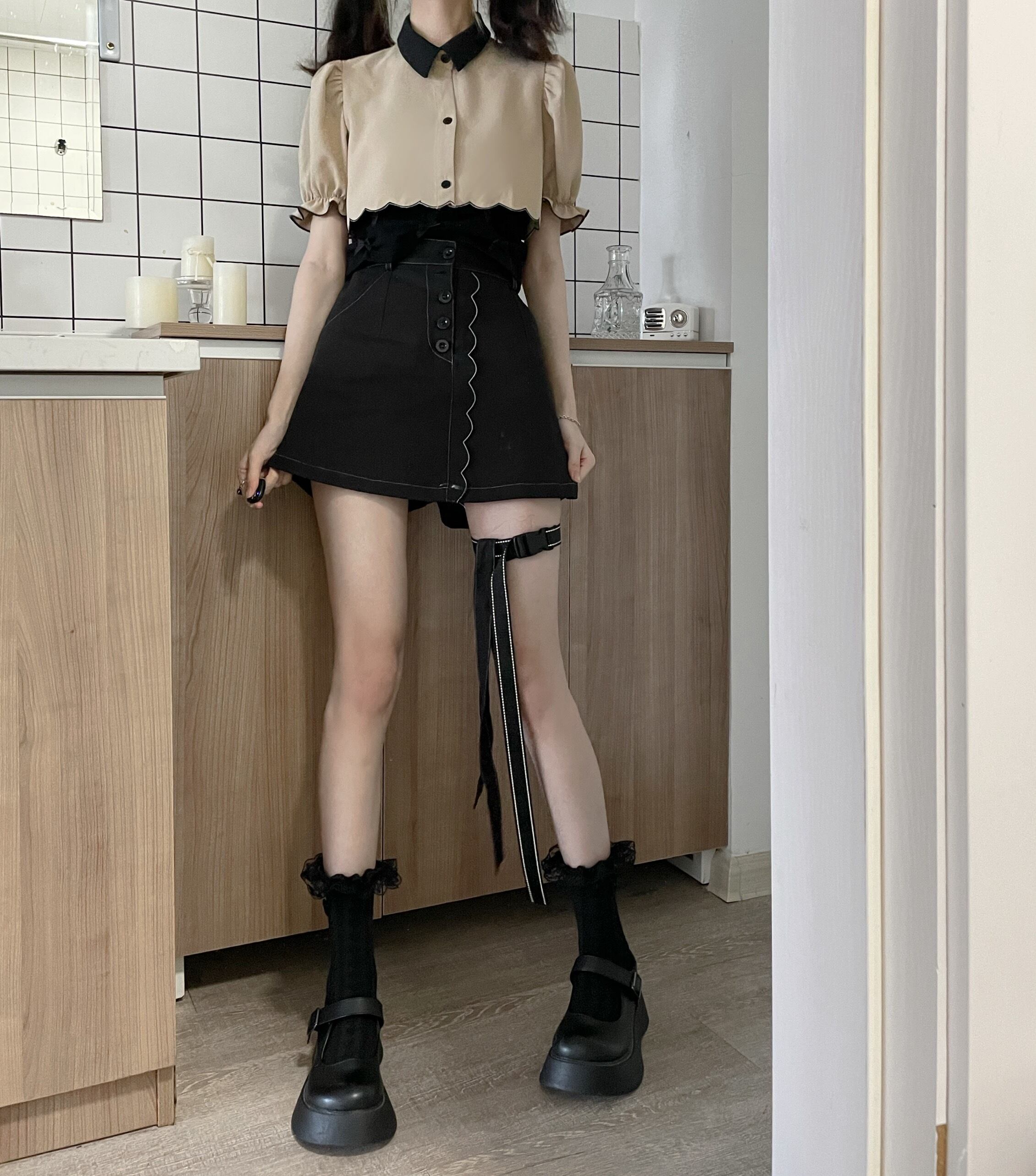 pinksaviorスウィートハートクッキーリップルショートシャツプリーツストラップ+デザインハーフスカート2021セット 大人ガーリー キュート カジュアル PSTB90291662724