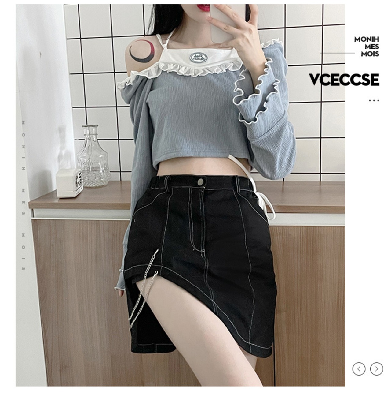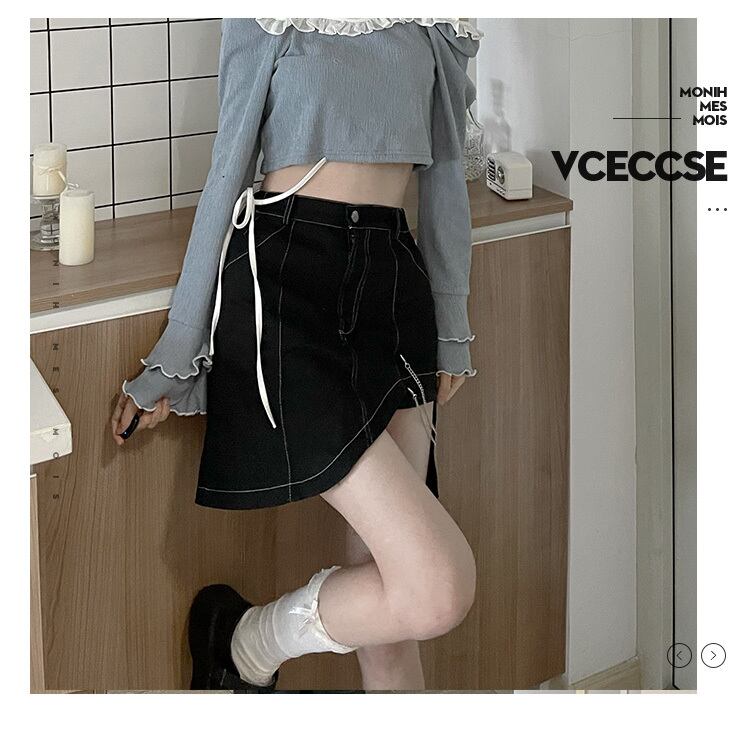 色:レースアップの青と白のブラウス,レースレース赤と黒,不規則なスカート,スラントショルダーチェーンラブトップブルー,斜めショルダーチェーンラブトップレッド