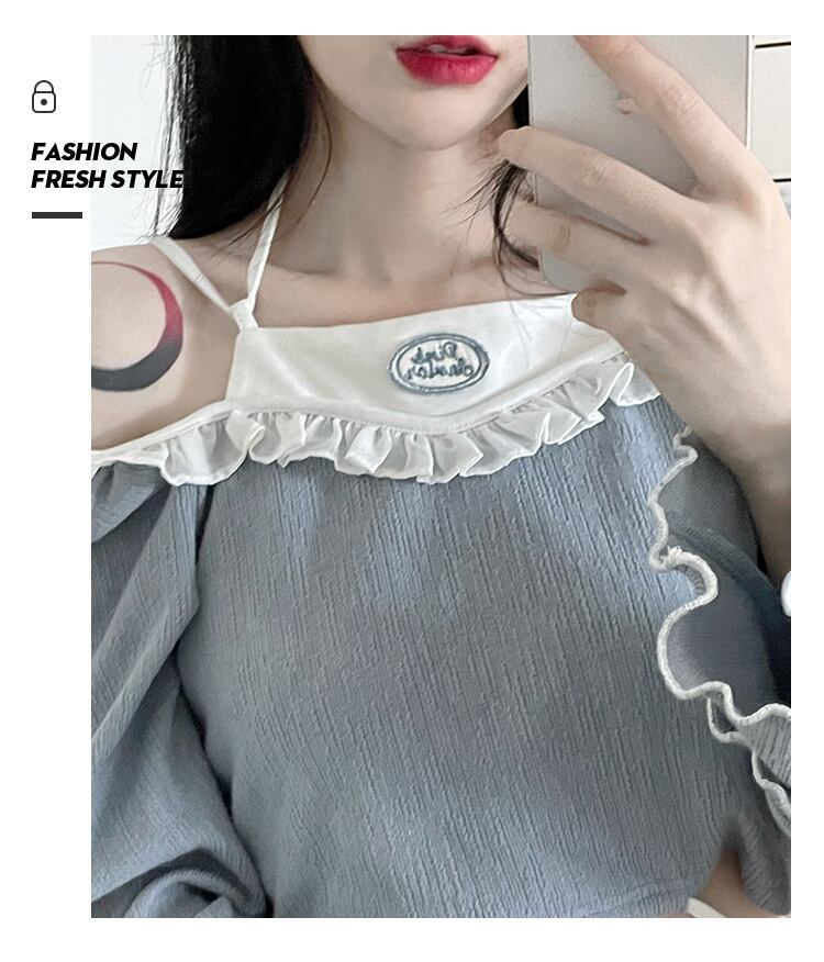 pinksavior花海純粋な欲望夏と秋長袖斜め肩不規則チェーンハーフスカート青と赤 ロング ブルー サマー 夏物 オータム 秋物 ピュア フラワーデザイン PSTB57367330127
