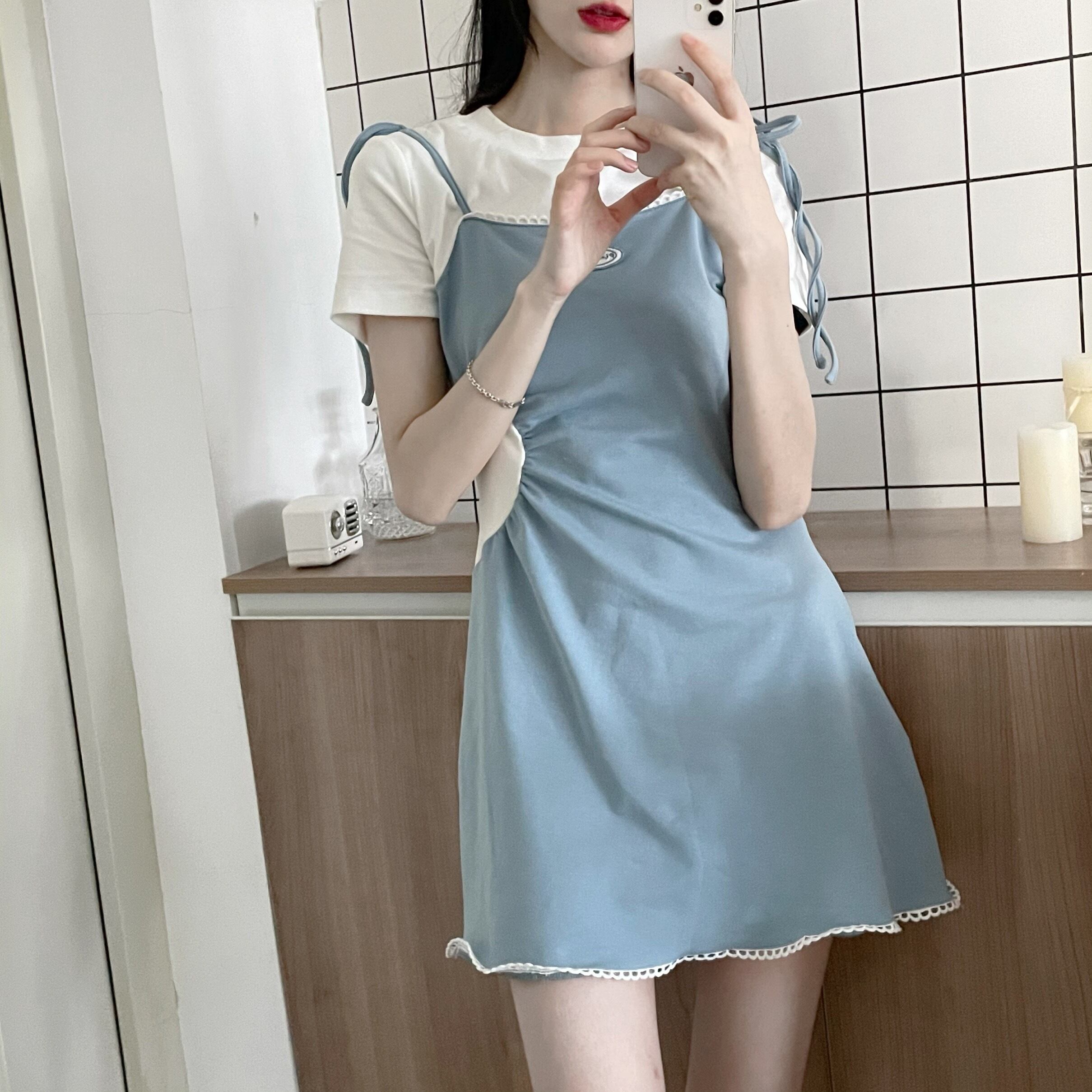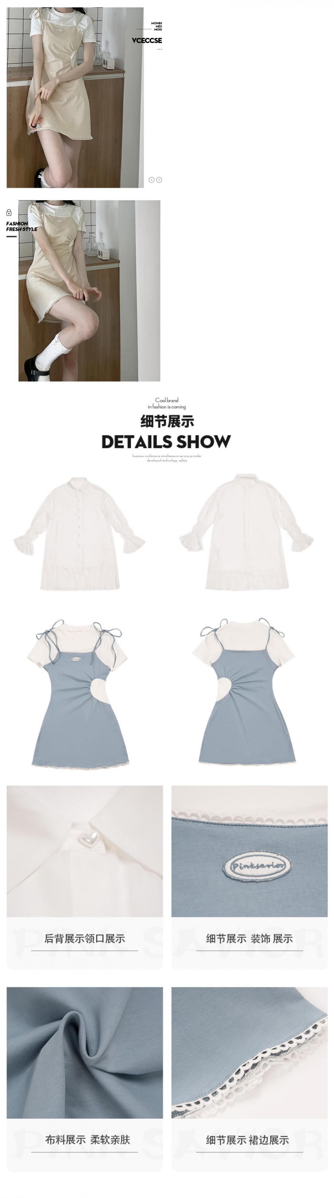 色:偽のツーピースサスペンダースカート,シフォン日焼け止めシャツ