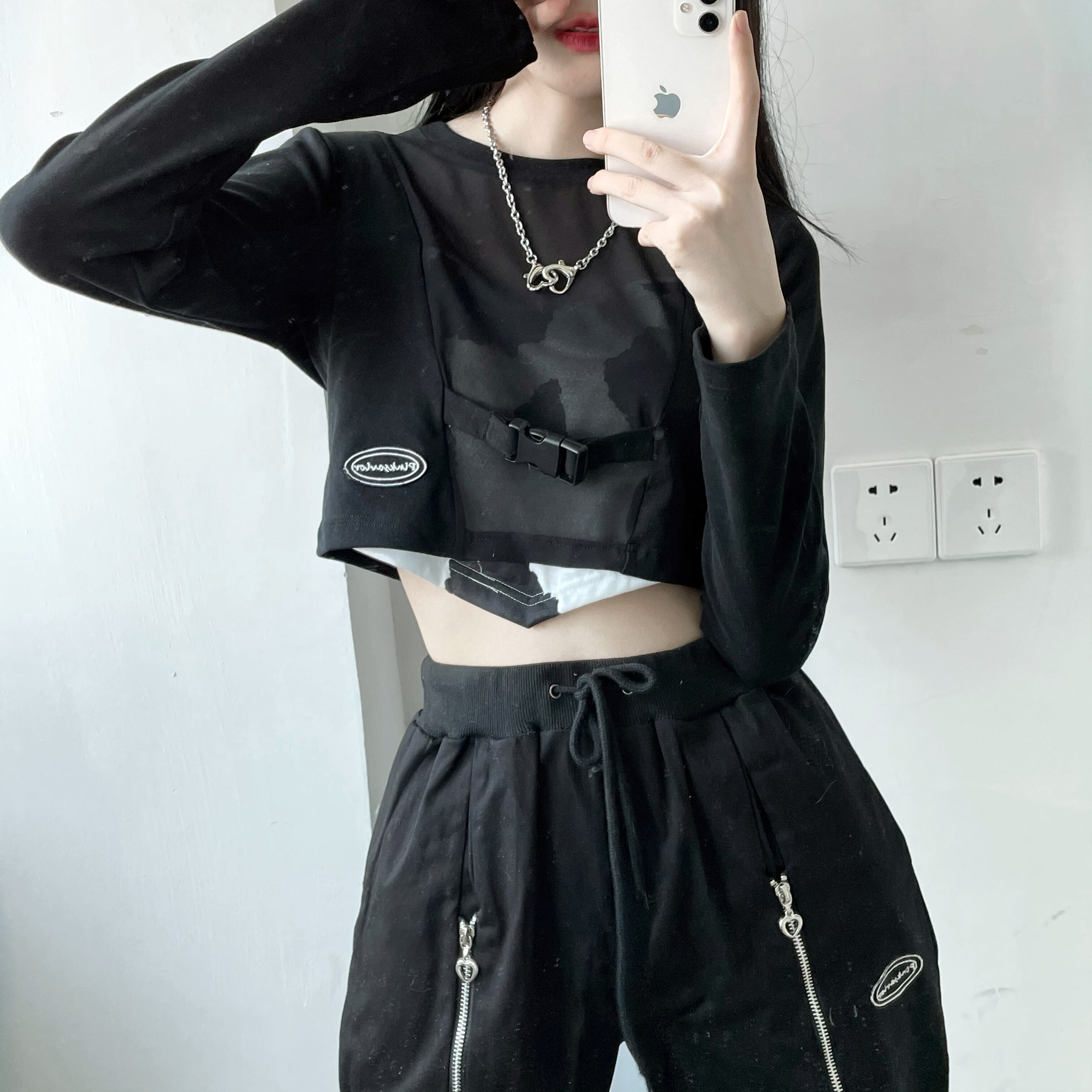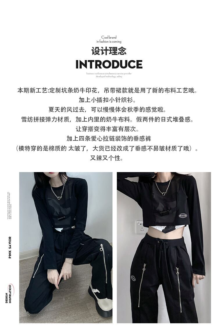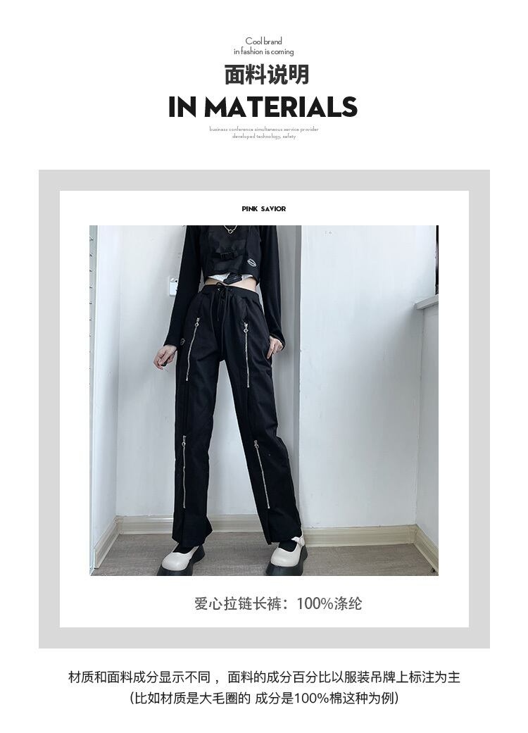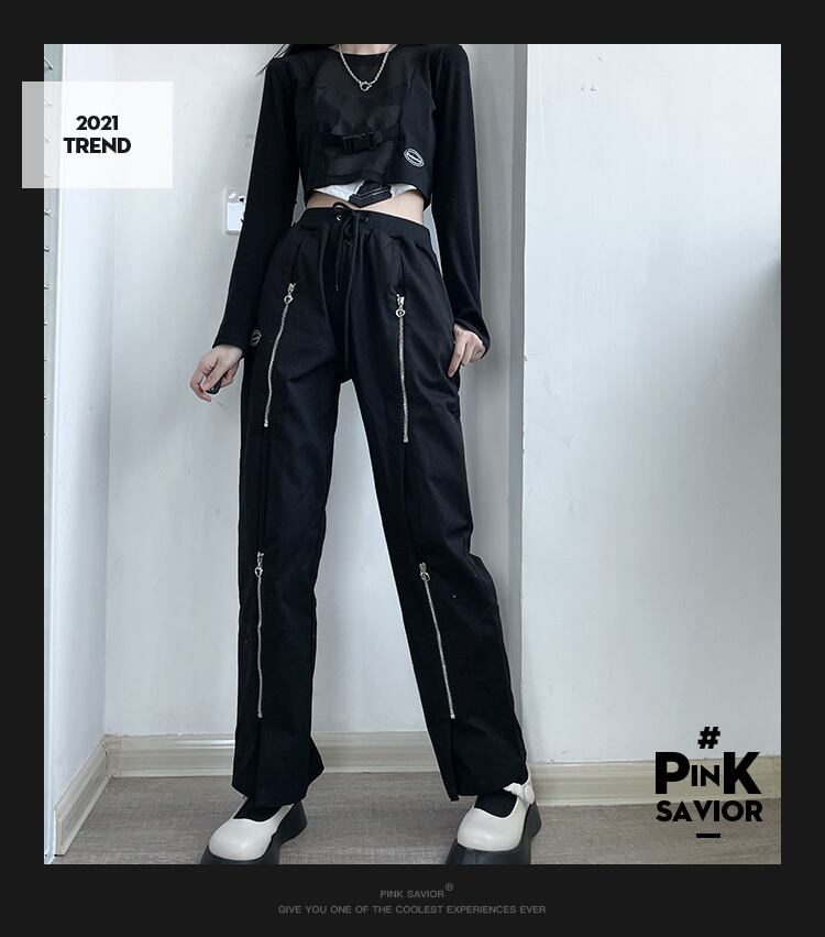 pinksaviorはジッパーの装飾初秋のドレープと薄い黒のズボンが大好きです ブラック オータム 秋物 PSTB22230857654