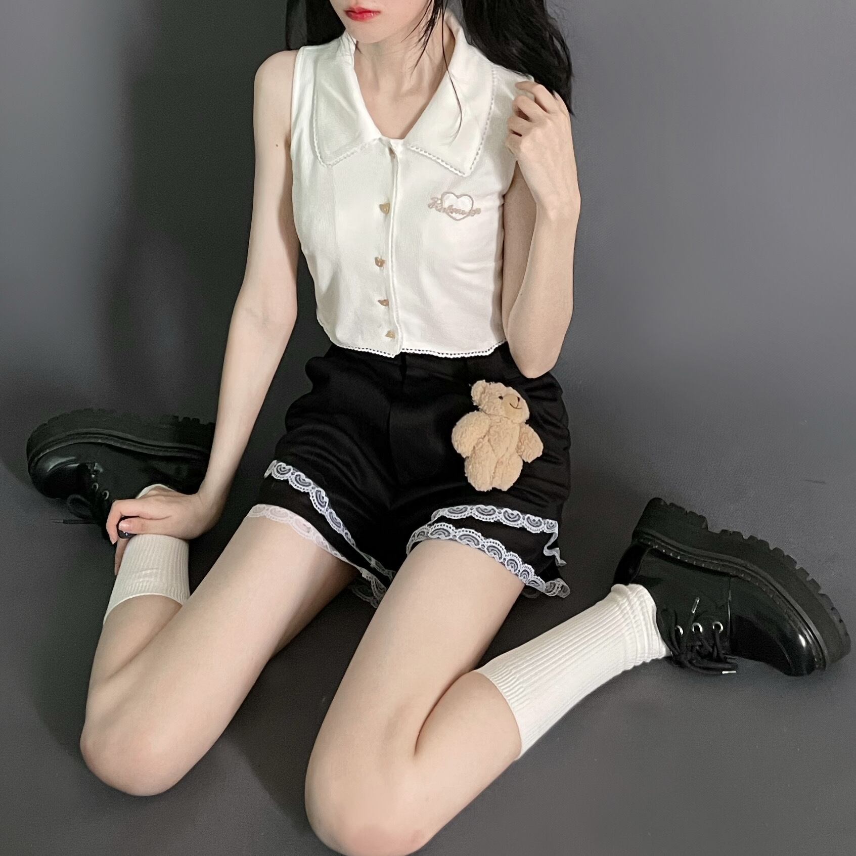 色:ノースリーブトップス,ダブルレースサイドパンツ、クマのストラップを送る