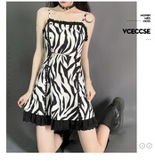 pinksaviorゼブラパターン&ピュアブラックサスペンダースカートレディースウエストウエスト2021新しいスリムなスペシャルデザイン PSTB66168698557