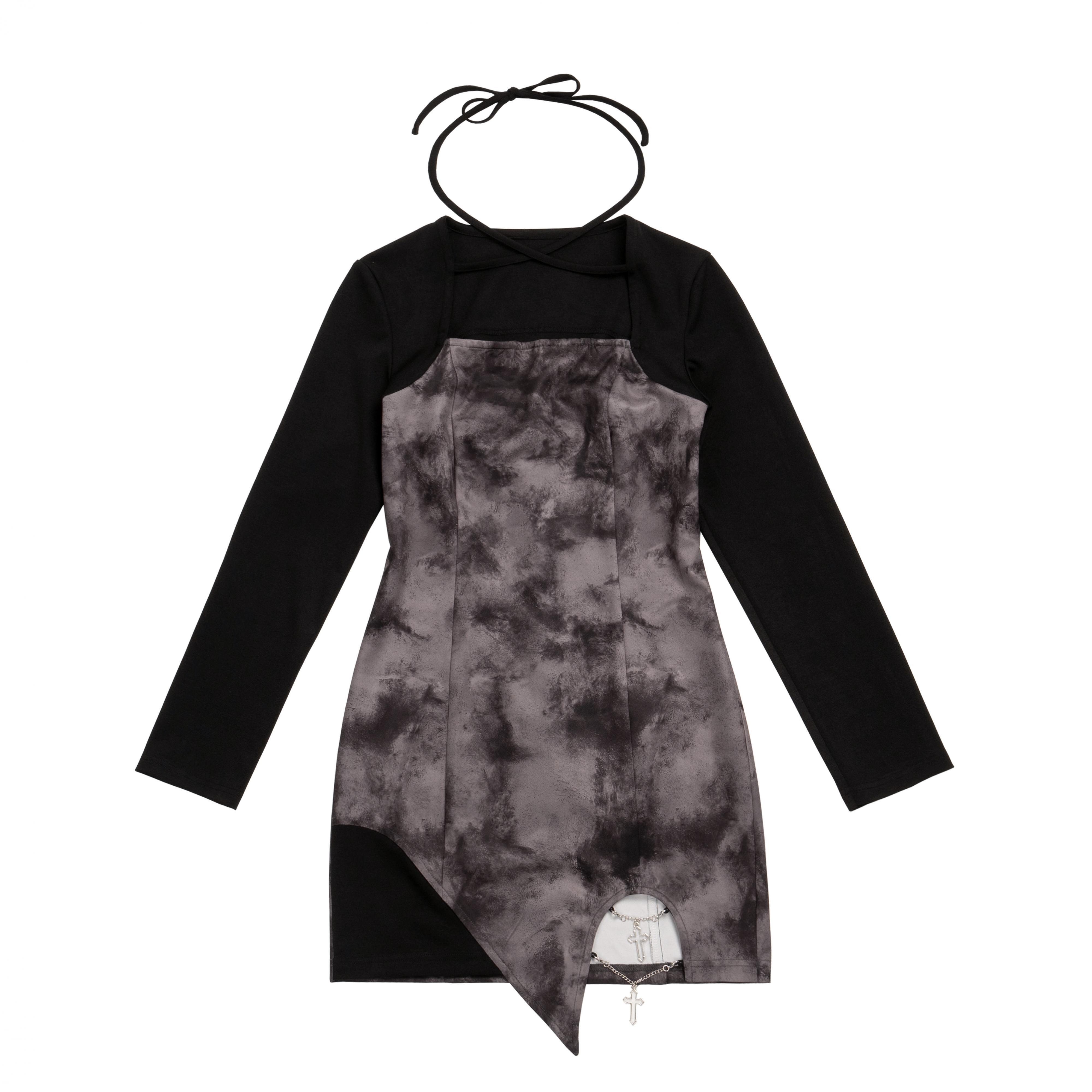 pinksavior【深海ロマンス】初秋の絞り染めホルターネック不規則ステッチシャツスカートデザイン ピンク オータム 秋物 PSTB72028817408