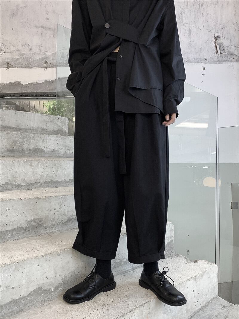 BLACK AND WHITEダークストレートスルーカジュアルパンツルーズ厚みのある秋冬新作ニッチデザインワイドレッグパンツ ホワイト ブラック オータム 秋物 ウィンター 冬物 BWTB16617284604