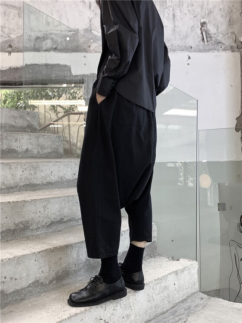 BLACK AND WHITEダークカジュアルパンツ、ビッグクロッチパンツ、バギーパンツ、ハーレムパンツ、デザインモデル、秋冬新作メンズ&レディース ホワイト ブラック オータム 秋物 ウィンター 冬物 BWTB92767961408