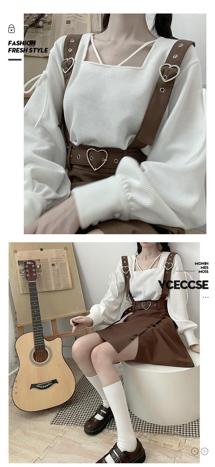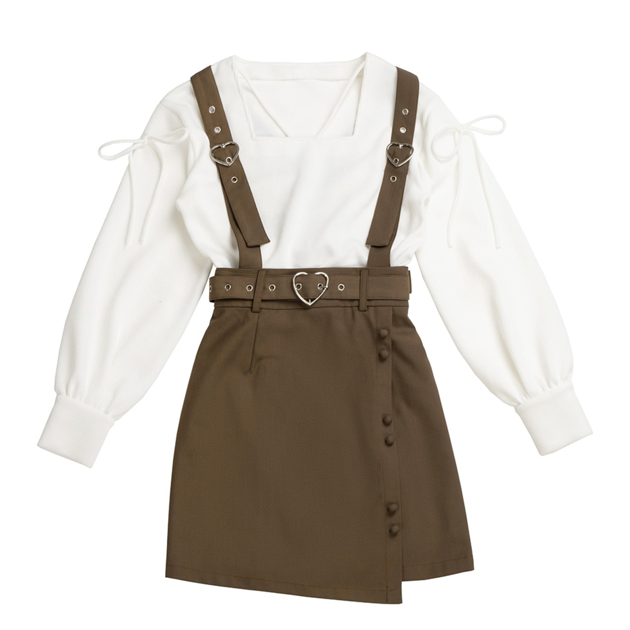 pinksavior [メープルリーフポエティック]初秋のニットチェスナットトップストラップスカートオールデイリー ピンク オータム 秋物 PSTB97177216131