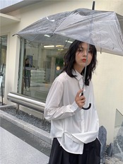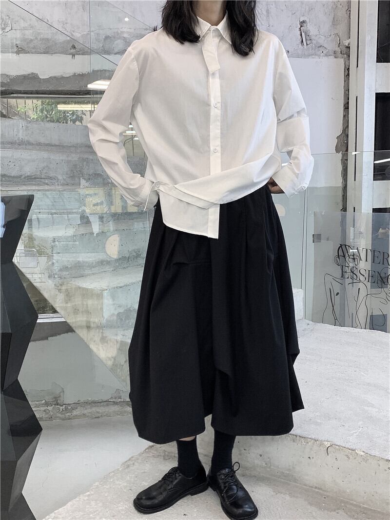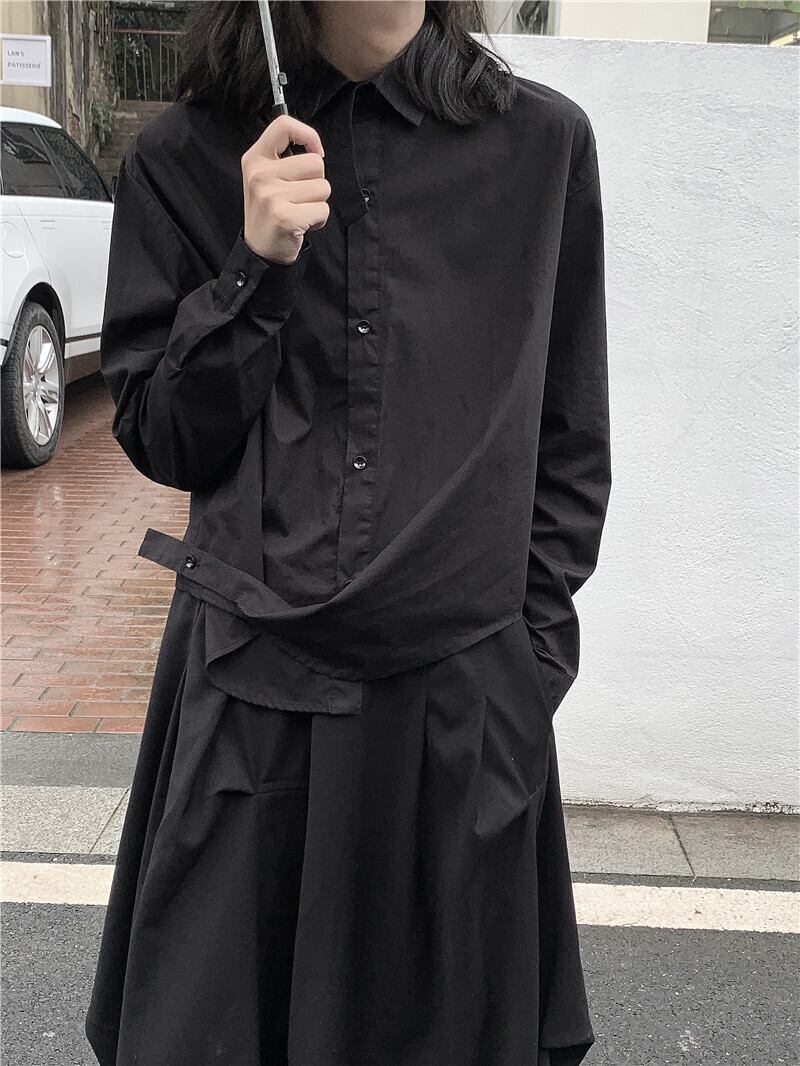 BLACK ANDWHITEダークデザインシャツシャツ長袖秋のコットンルーズ ロング ホワイト ブラック オータム 秋物 BWTB24680772456