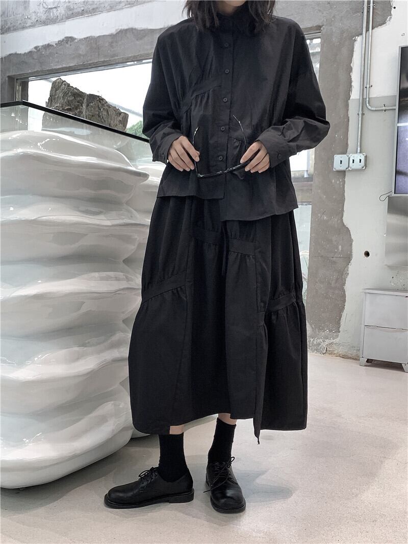 BLACK ANDWHITEダークプリーツデザインスカート秋新作aラインスカートイレギュラーロングスカート ホワイト ブラック オータム 秋物 BWTB33580782572
