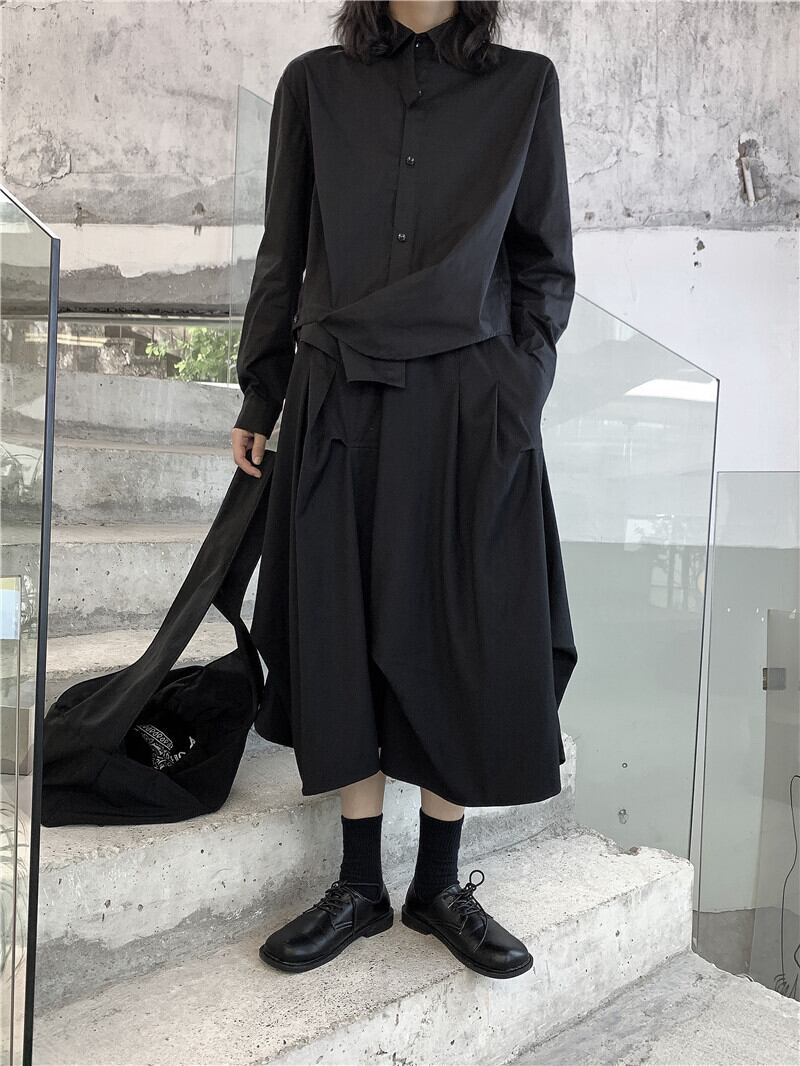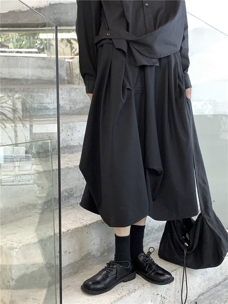 BLACK AND WHITEのダークデザインのスカートのニッチな折り目非対称のaライン不規則なミドル丈 ホワイト ブラック BWTB36877265179