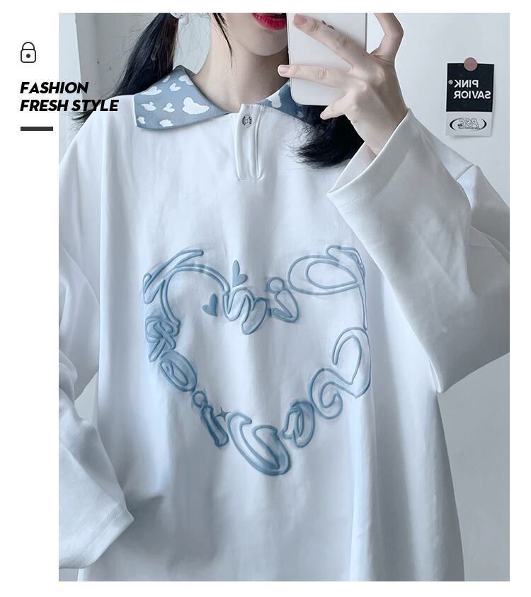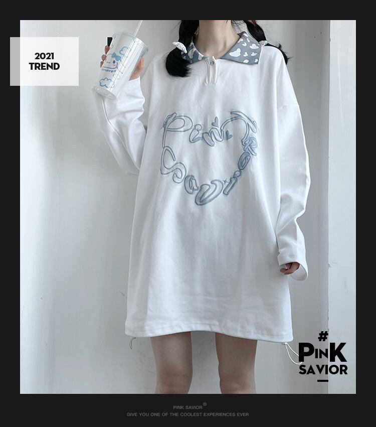 pinksavior [クラウドラブ]立体フォームプリント織り襟コットンソフトボーイサイズ長袖Tシャツ ロング ピンク PSTB99401634112