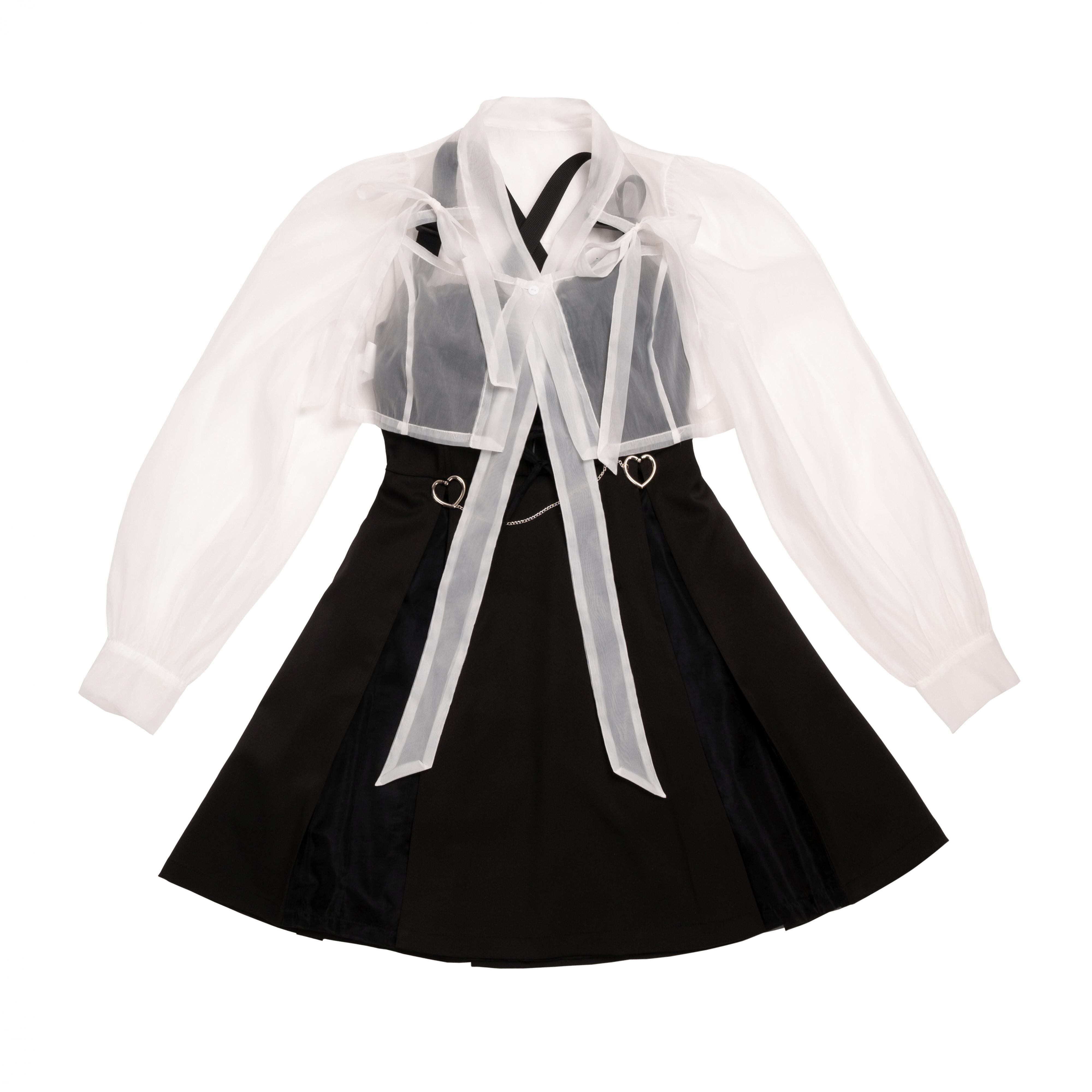 色:白の透明カーディガン,純粋な黒い魚の骨の小さな黒いドレス,ピンクの透明カーディガン,ブラックファイトパウダーフィッシュボーンリトルブラックドレス
