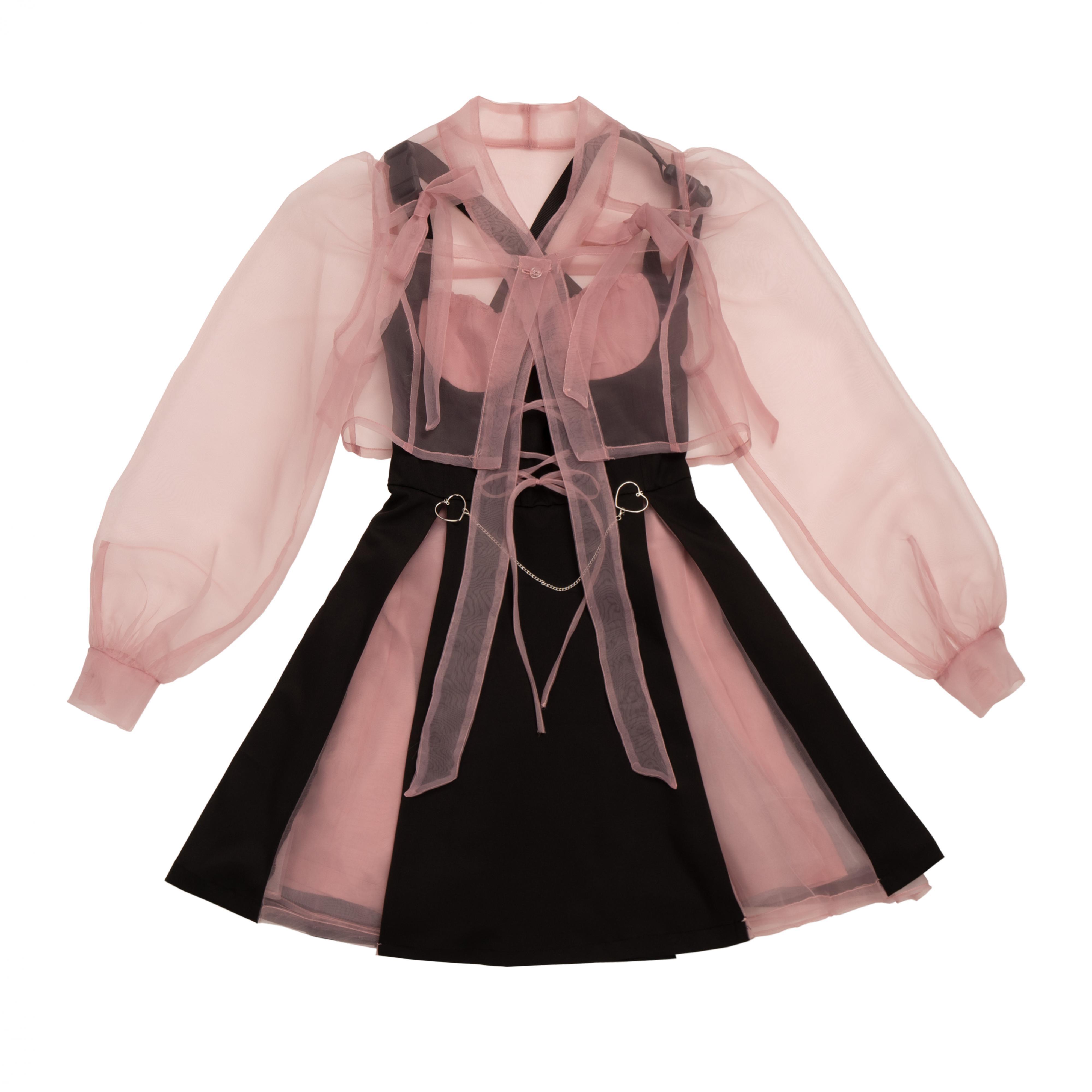 pinksavior [SweetheartMist]日焼け止め小韓服透明日焼け止めシャツ気質フィッシュボーンリトルブラックドレス ピンク 大人ガーリー スウィート キュート カジュアル PSTB55579784857