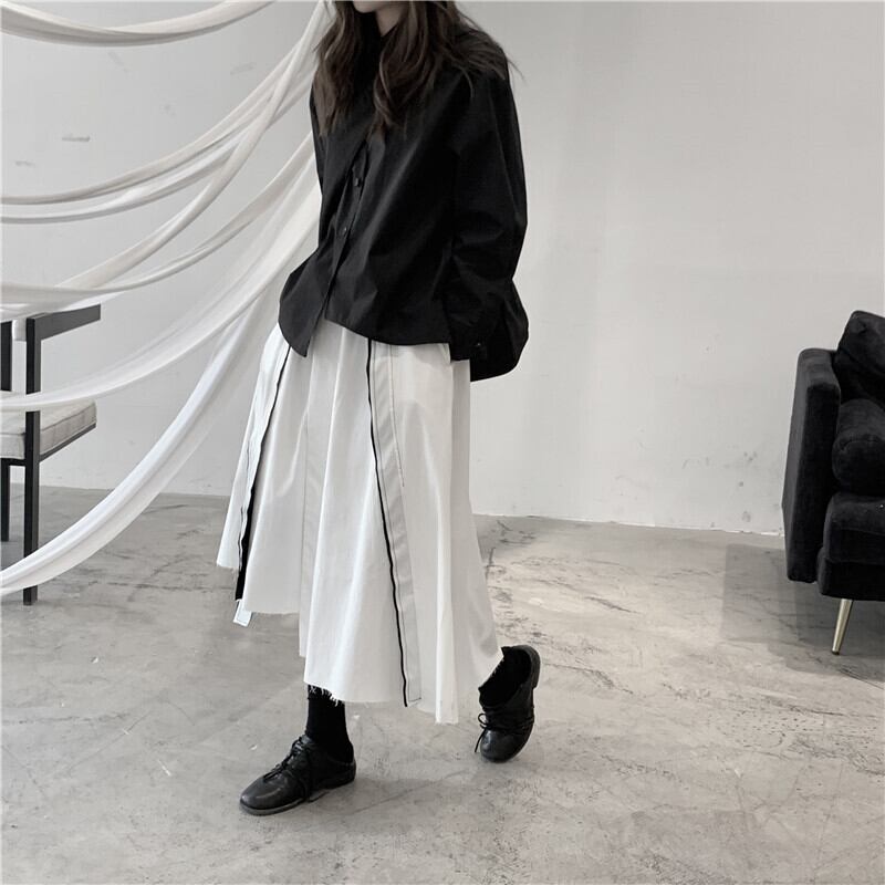 BLACK ANDWHITEダークブラックスカートホワイトデザインコットンイーズスカート BWTB99541337151