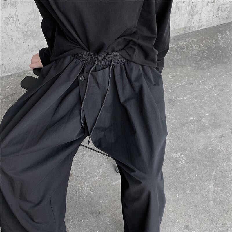 BLACK ANDWHITEダークブラックカジュアルパンツナインポイントパンツストレートスルールーズでシン非対称デザインのコットン ホワイト BWTB70975021205
