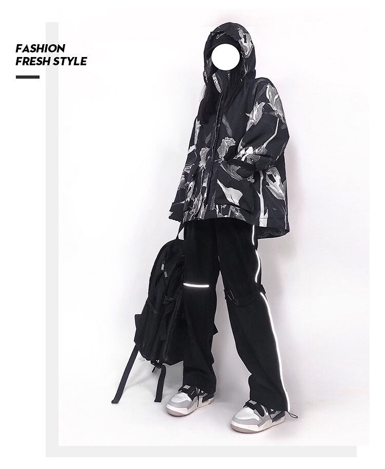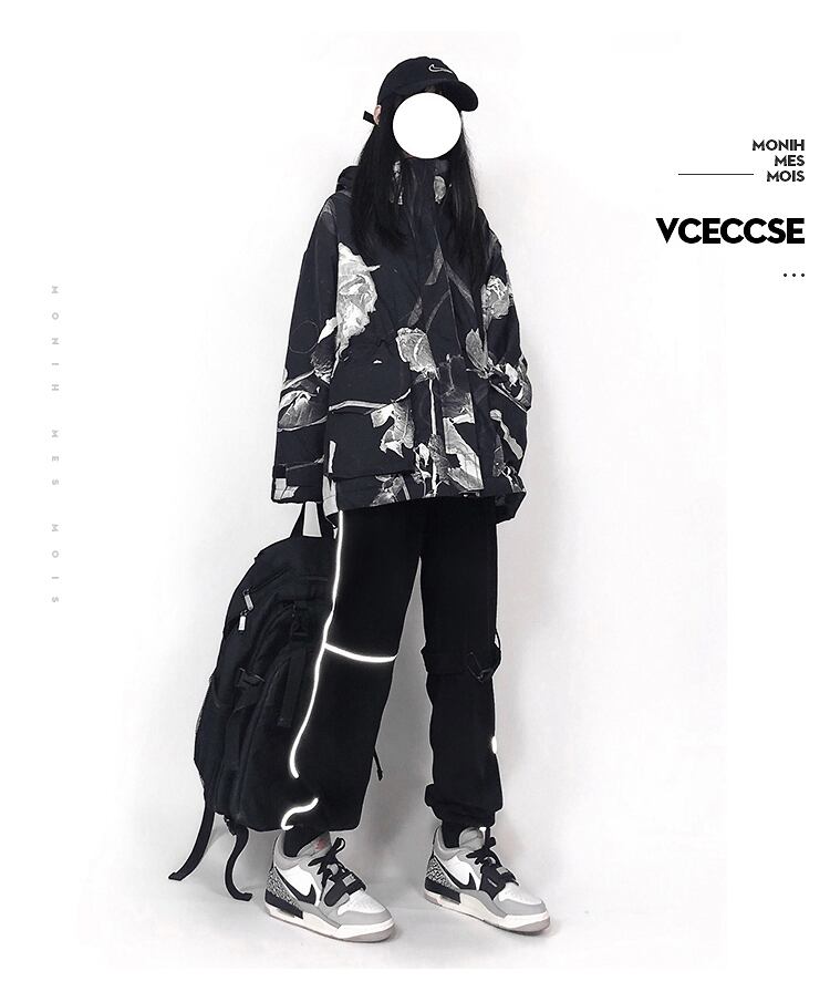 pinksaviorカラビナ機能口蹄疫調節可能な反射ベルト装飾ドレープ秋と冬の黒のオーバーオール ブラック オータム 秋物 ウィンター 冬物 アジャスタブル ハーネス PSTB96637706488