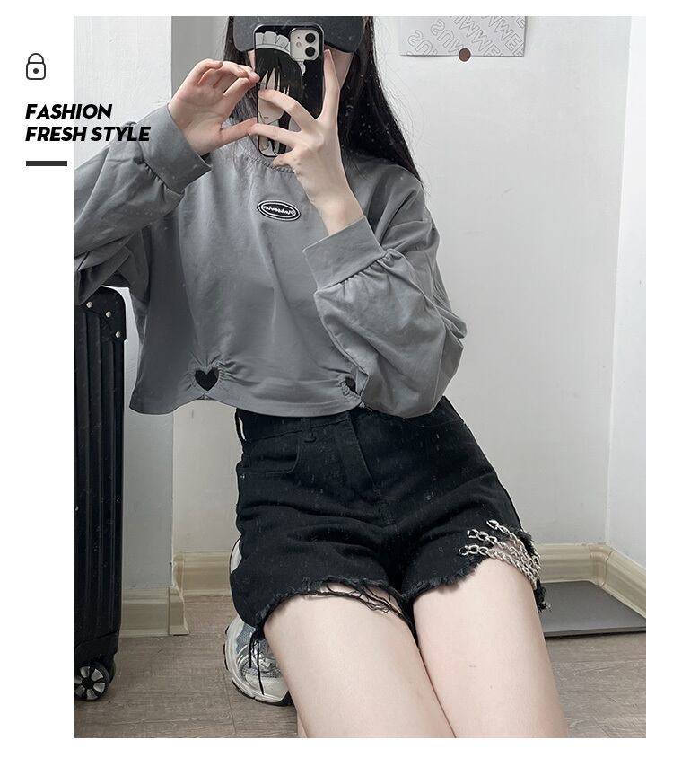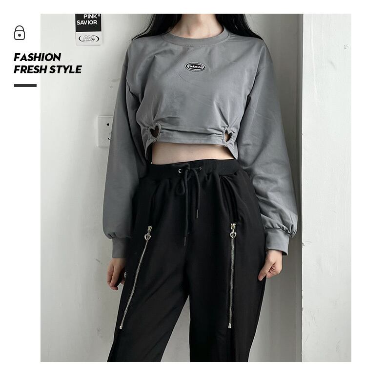 2021年秋にpinksavior恋人気質ウエストレス愛中空初秋ショートラウンドネック長袖 ロング 大人ガーリー スウィート キュート カジュアル オータム 秋物 Oネック PSTB44714074635