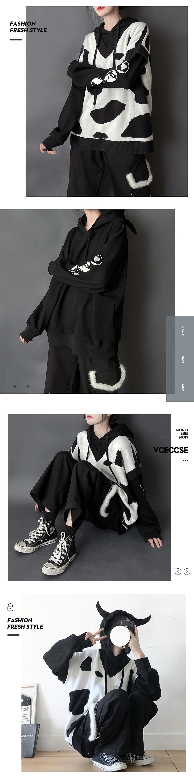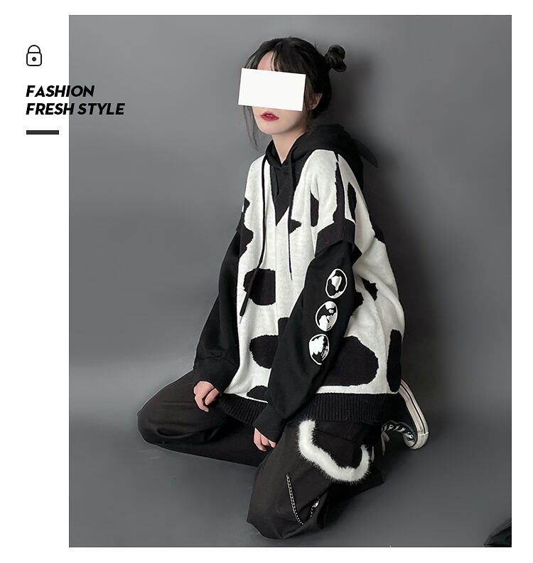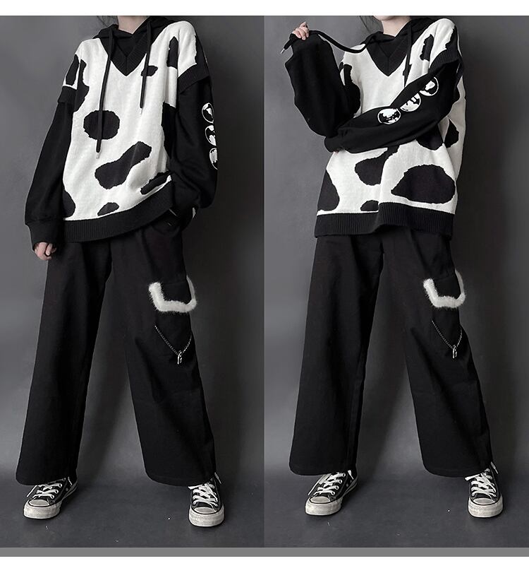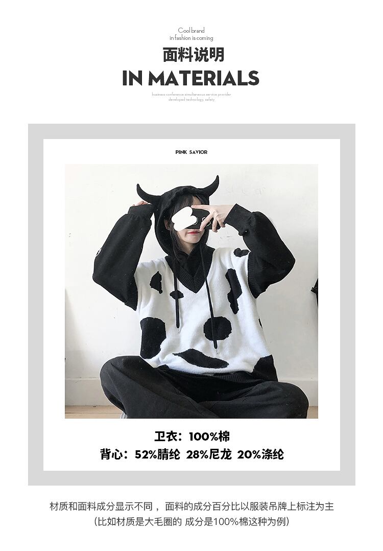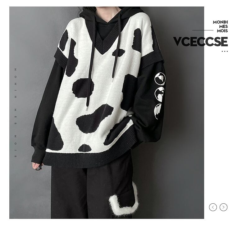 色:牛の黒と白のニットベストが入荷しました,白牛セーター在庫あり,黒牛のセーター,カウパウダーホワイトニットベスト