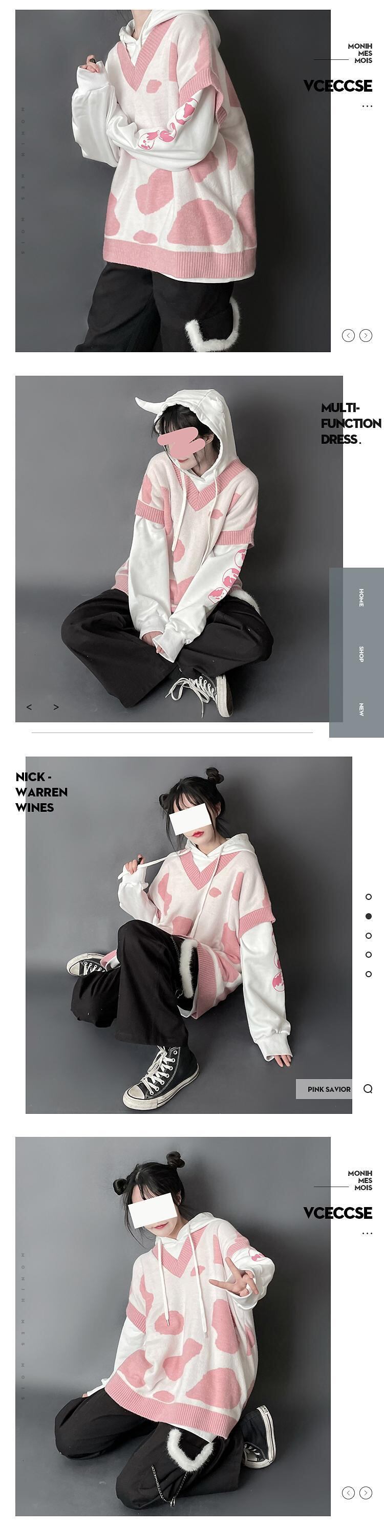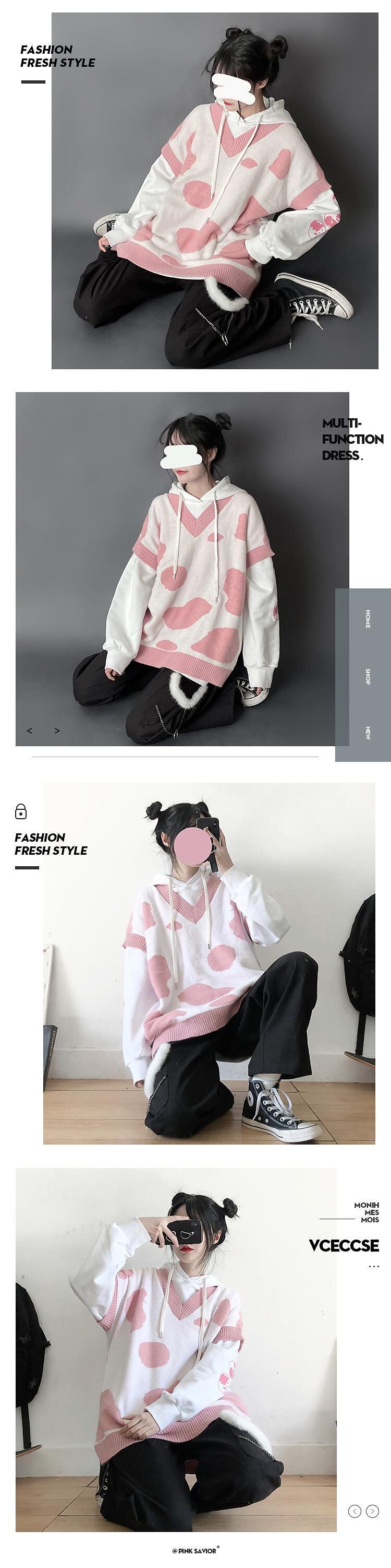 pinksavior [強気]ニットカウベストとホーンスウェットシャツセット ピンク PSTB80906285776