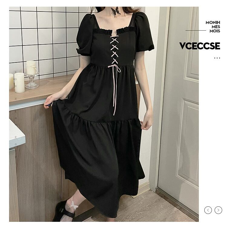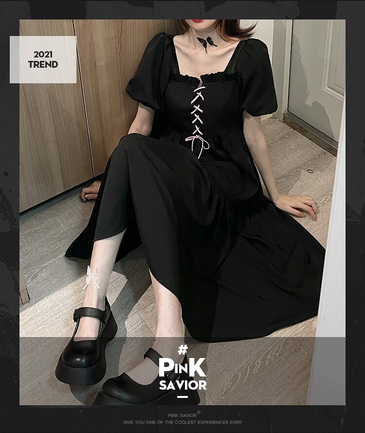 pinksavior春ホワイトムーンライトパウダーインク包帯カバーミートドレーププリーツロングスカートシーズンブラックドレス女性夏 スプリング 春物 サマー 夏物 PSTB11124467659