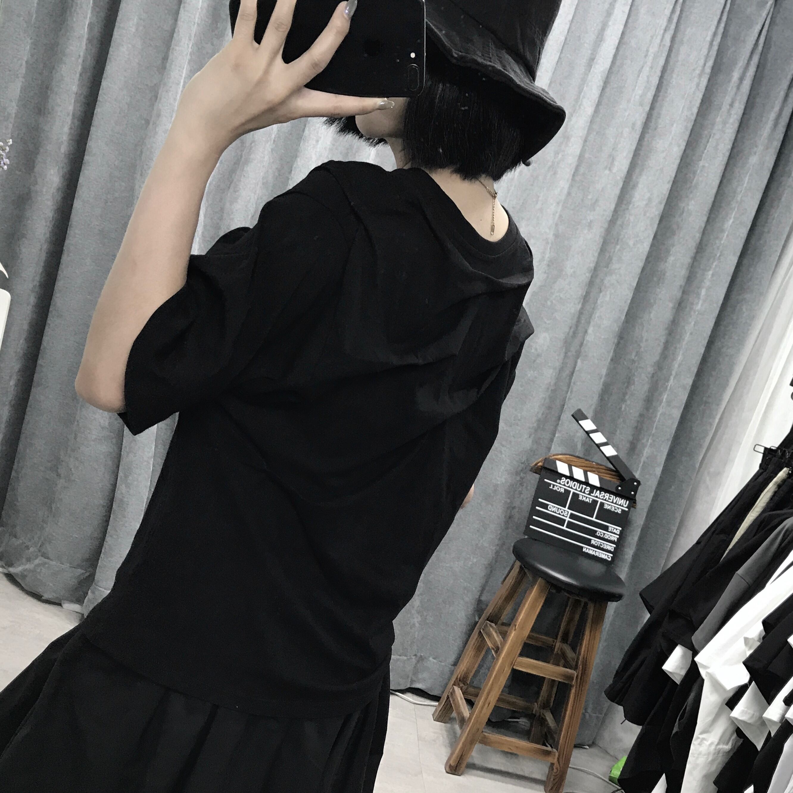 ダークフォールドデザインの黒の半袖女性ルーズTシャツ夏の婦人服 ブラック サマー 夏物 BWTB38959983876