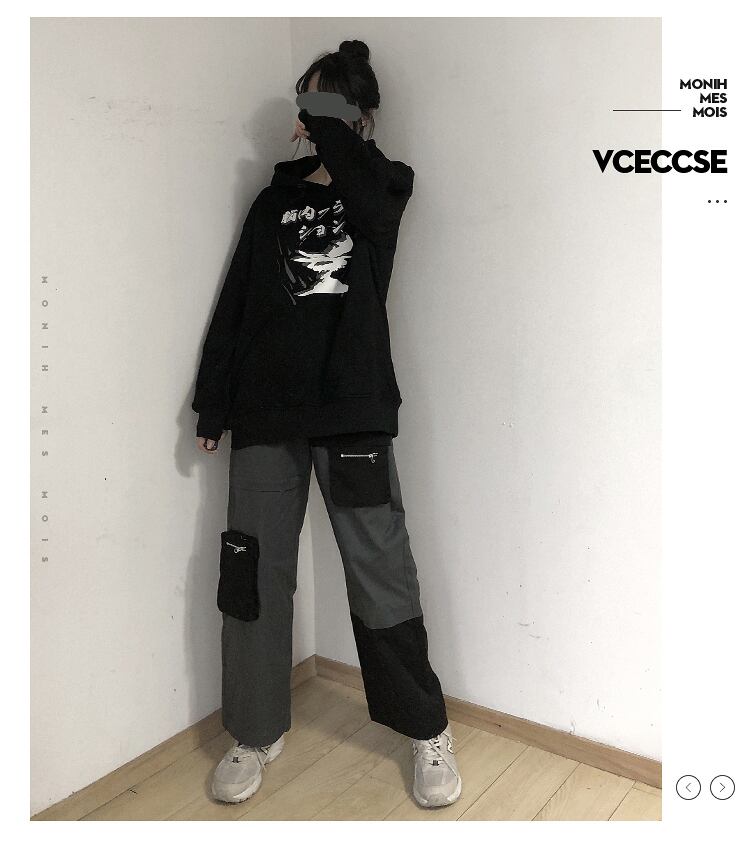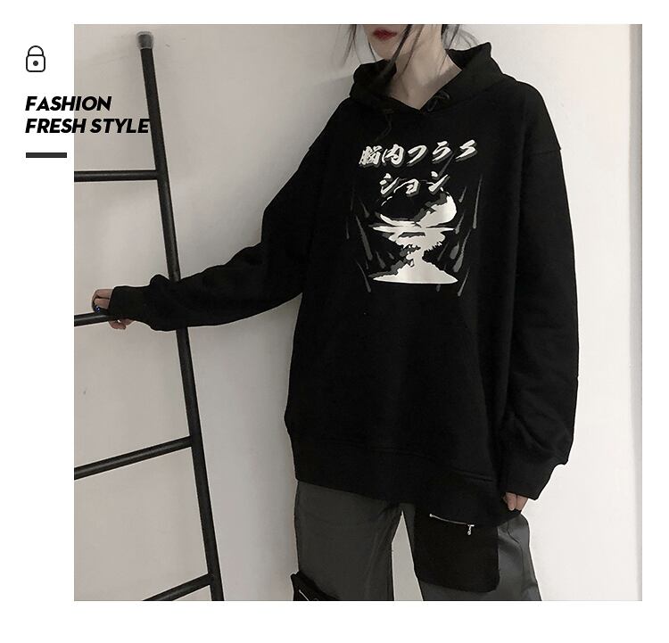 pinksavior脳変動黒と白の落書きeseスタイルイラスト春カップル友達フード付きセーター ホワイト ブラック スプリング 春物 PSTB85121173997