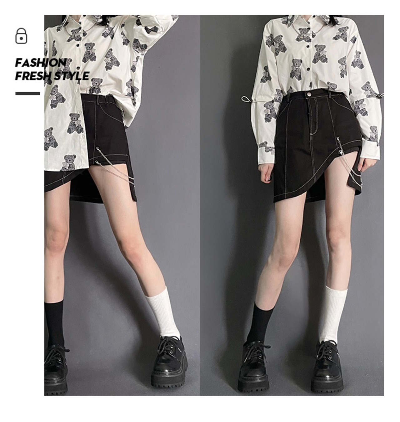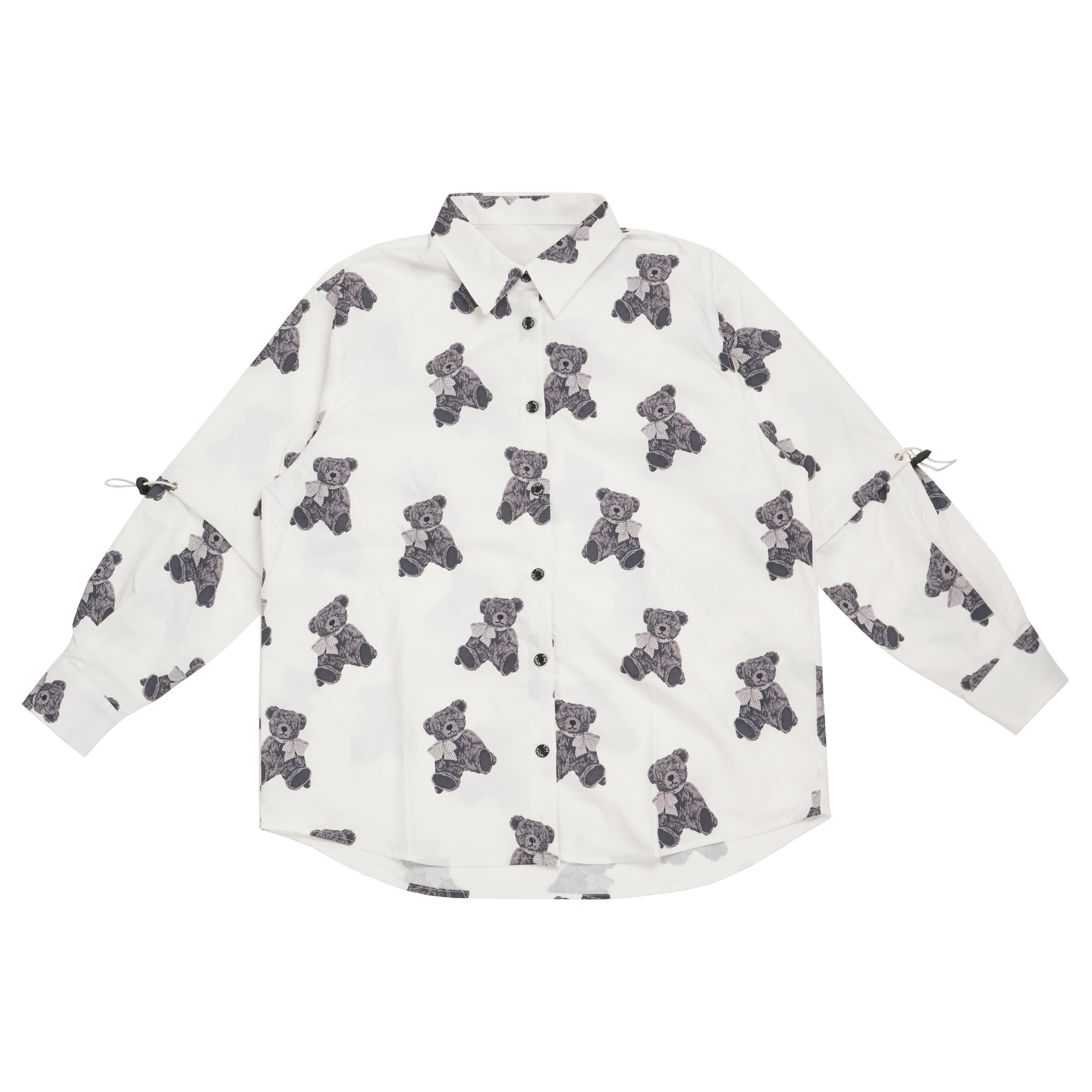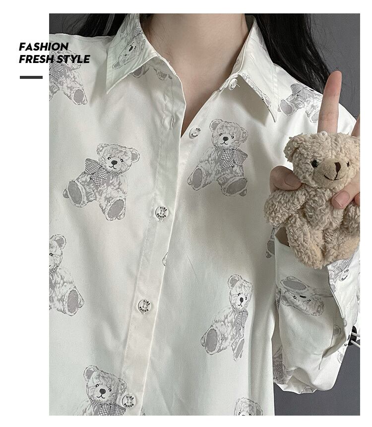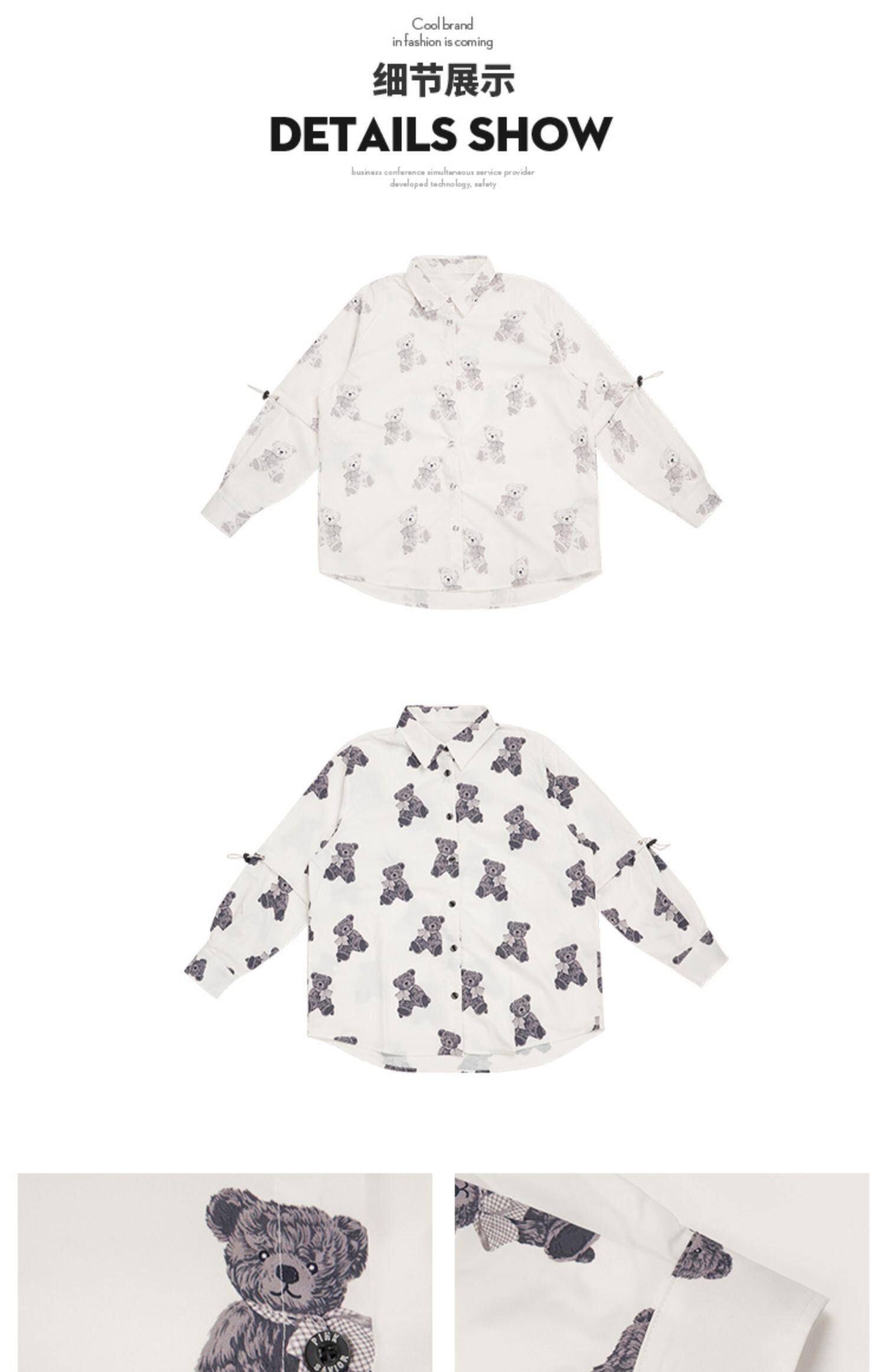 初秋のプリントカレッジデザインクマ黒と白のルーズシャツ ピンク ホワイト ブラック オータム 秋物 PSTB30106024147