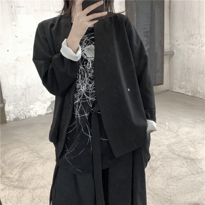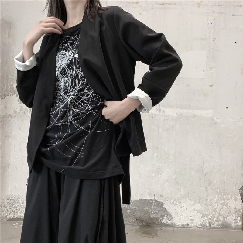 黒と白のダークスタイルの漢服デザイン、ショートジャケット、長袖、薄手のコート、eseスタイル ロング ホワイト ブラック BWTB10187224881