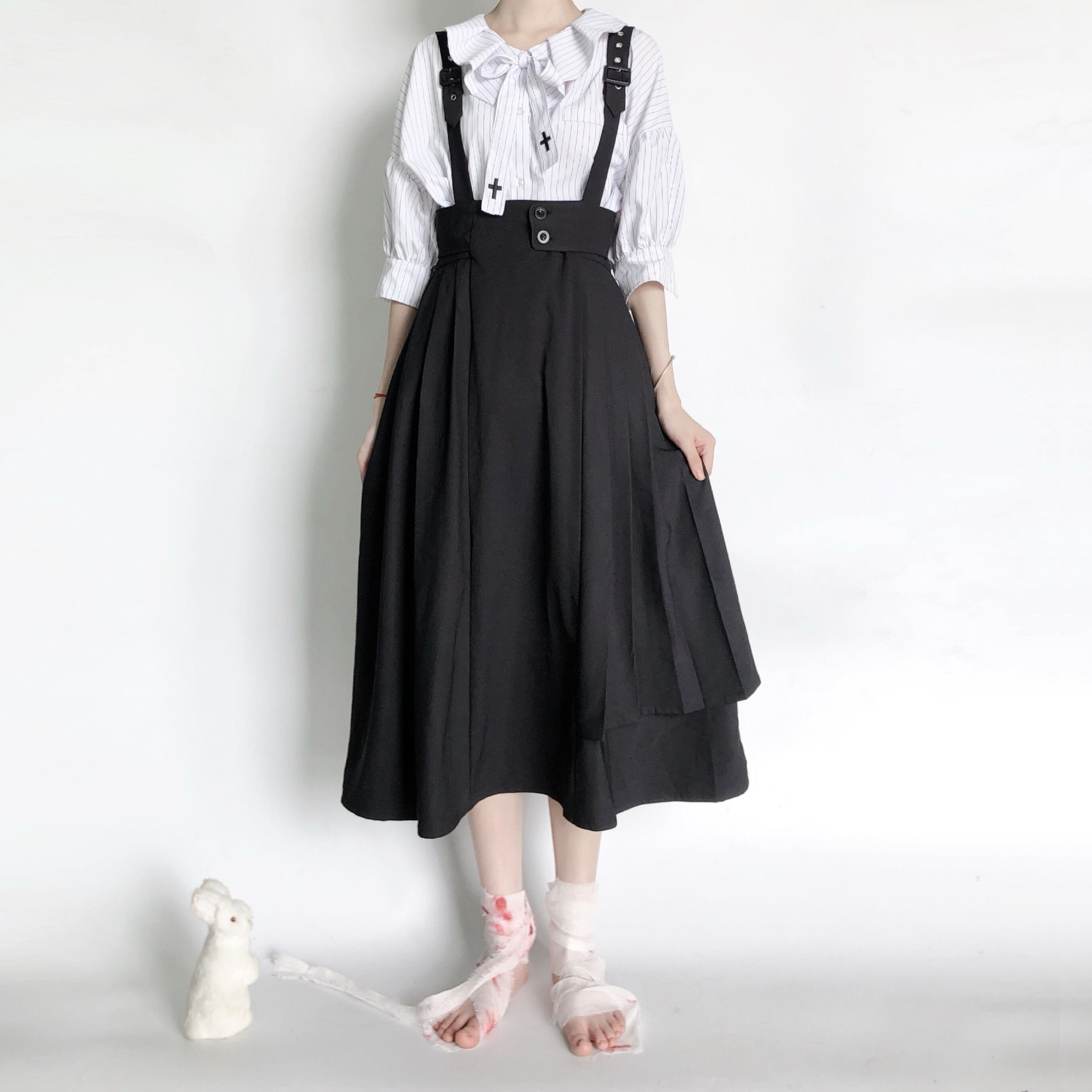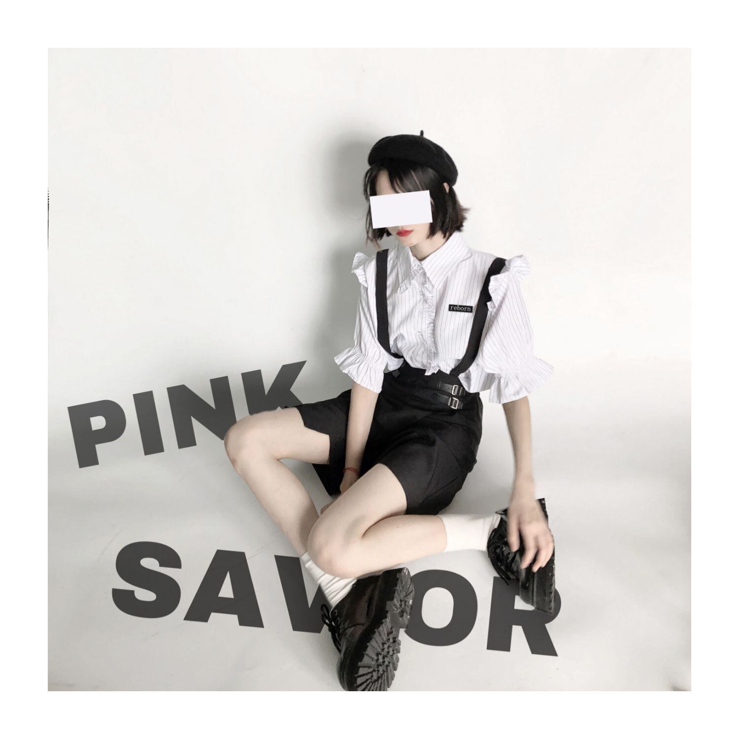 pinksaviorムーンライト黒と白のストライプ長袖半袖シャツハーフスカートガールフレンドセット(名前の手紙を送る ショート ロング ホワイト ブラック ハーフスリーブ PSTB29238254250