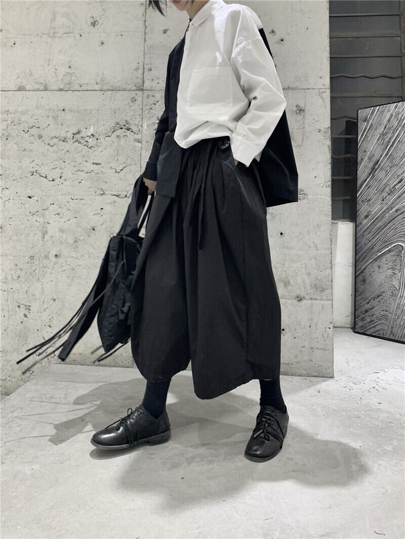 BLACK ANDWHITEダークブラックカジュアルパンツeseネクタイデザイン秋の新作パンツルーズストレート ホワイト オータム 秋物 BWTB55425582360