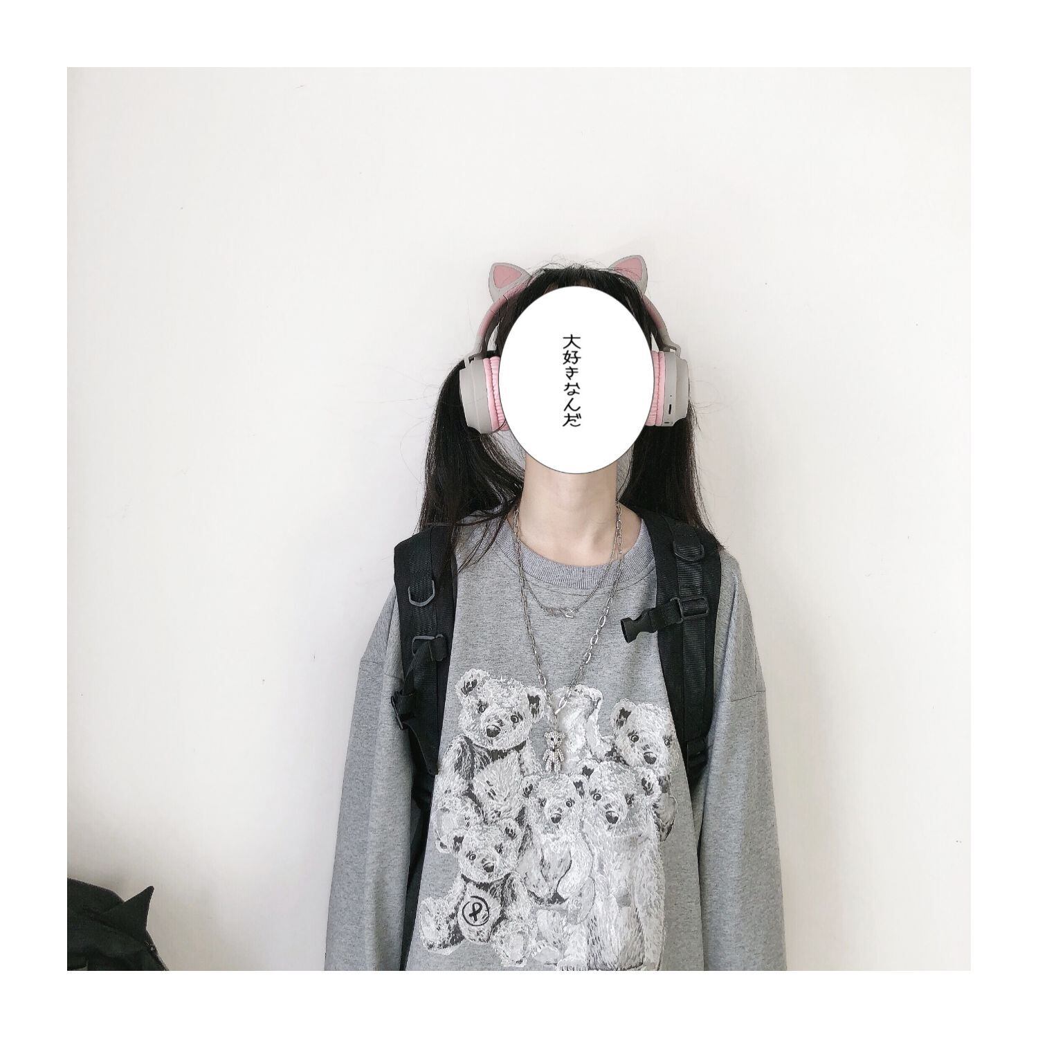pinksaviorグレーのクマの落書きプリント秋のラウンドネックルーズプリントのボトムスがないセーター オータム 秋物 Oネック PSTB55181903675