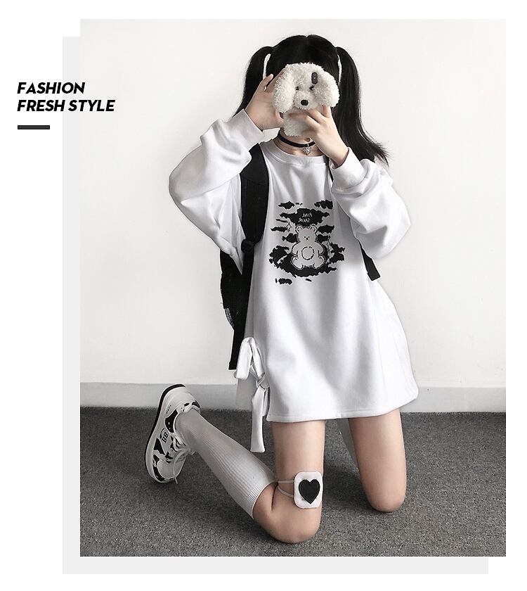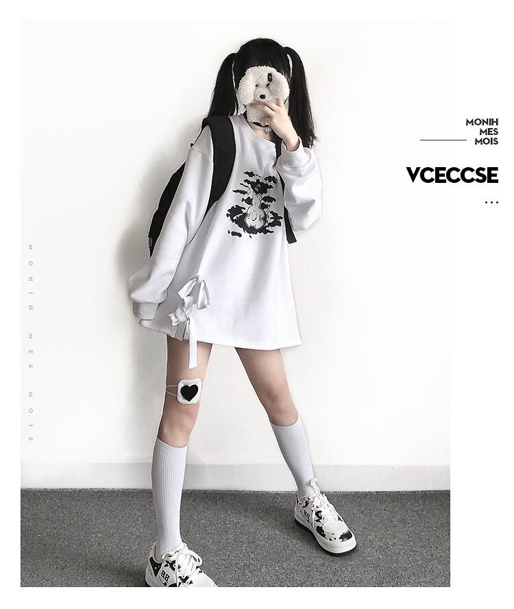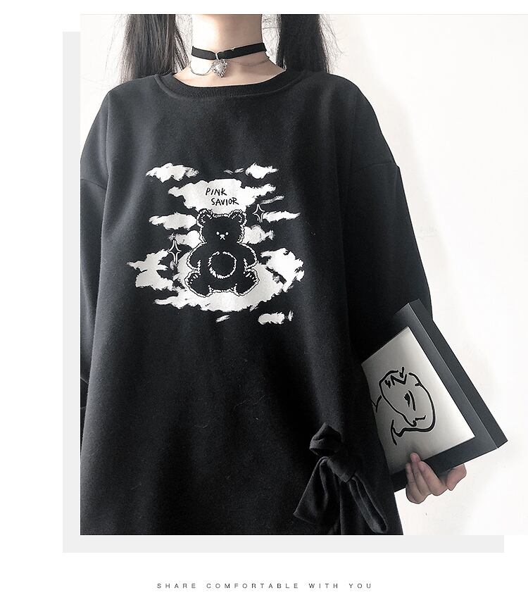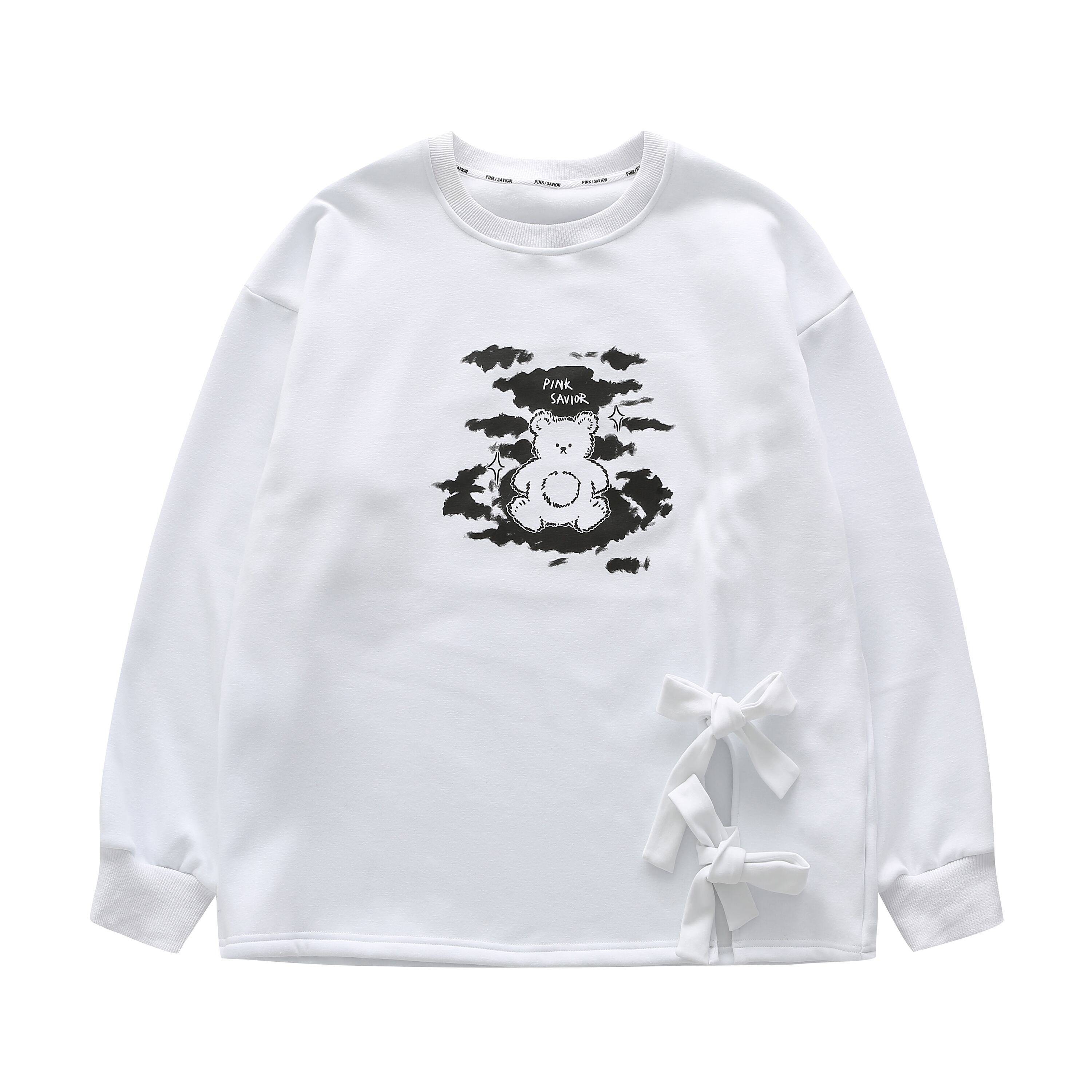 pinksavior黒と白に加えてベルベットの蝶ネクタイプリントダークベアカジュアルラウンドネックセーター ホワイト ブラック リボン Oネック PSTB52458653454