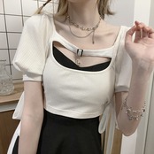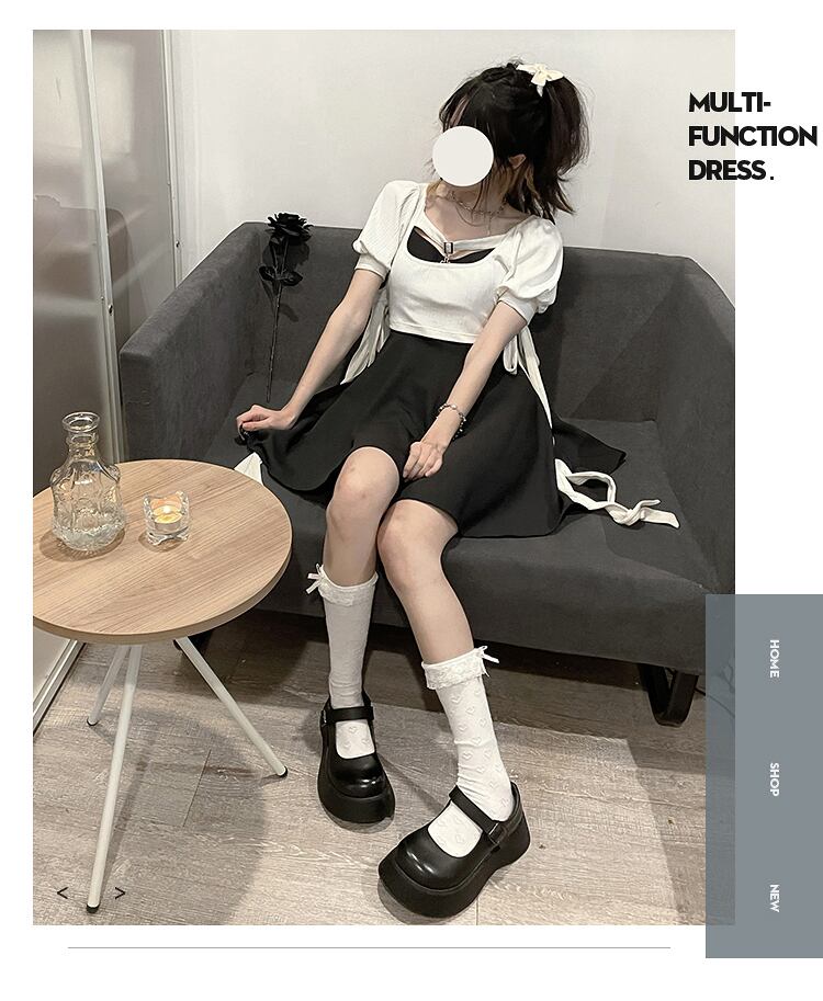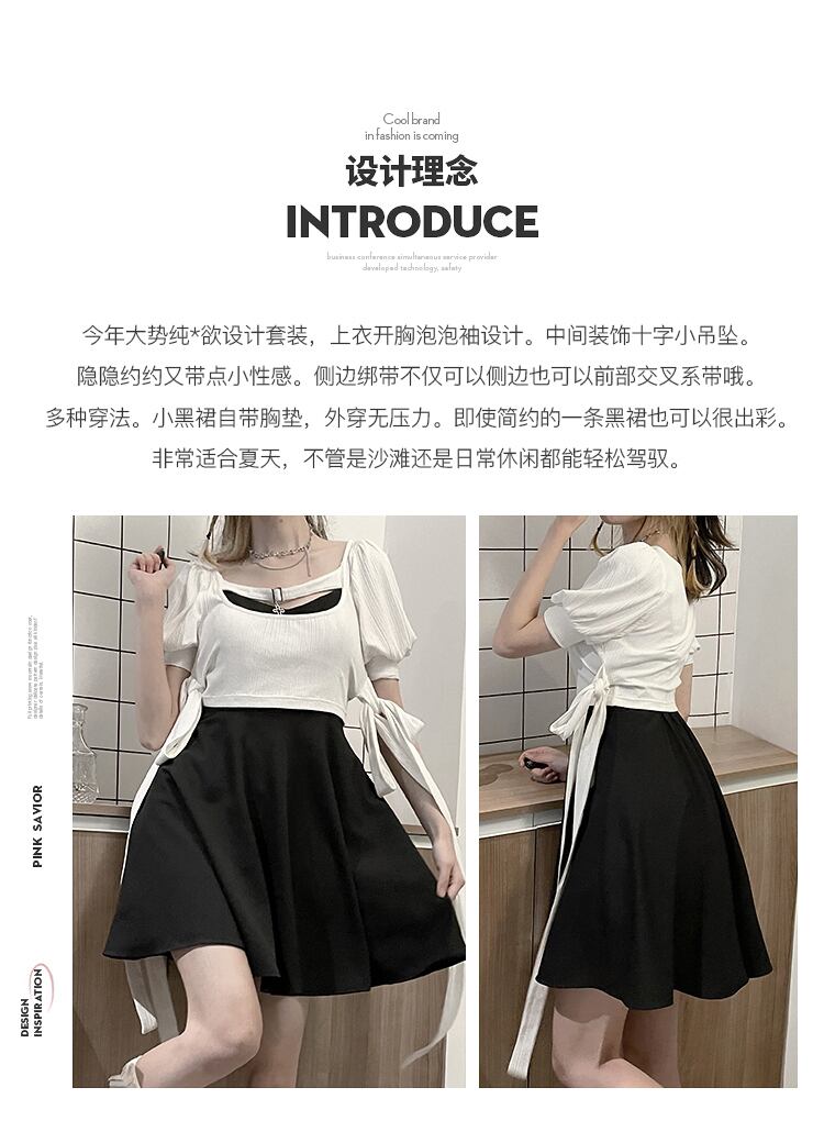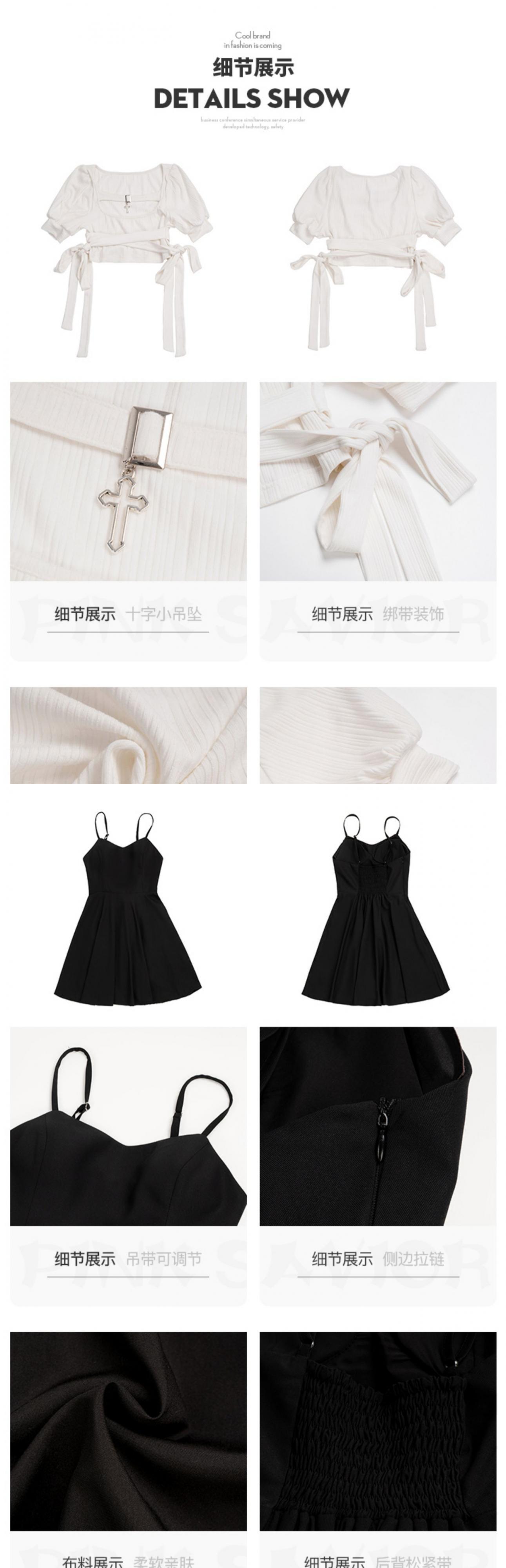 pinksaviorクロスハンギングチェーン胸飾りストラップトップ+リトルブラックスカートデザインスーツを開けたいという純粋な願望 ピュア PSTB25664174700
