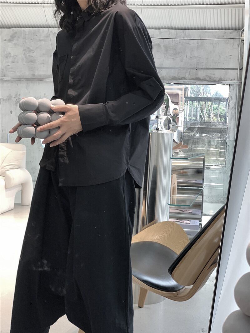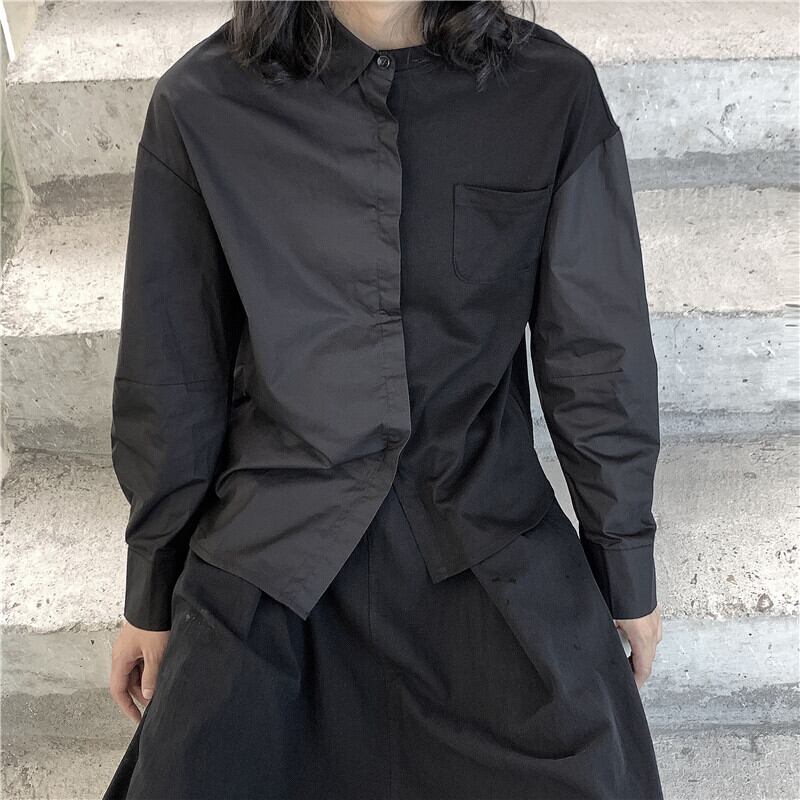 BLACK ANDWHITEダークブラックステッチシャツレディース長袖秋新商品コットンルーズカジュアルスタンドカラー ロング ホワイト オータム 秋物 BWTB44557046922