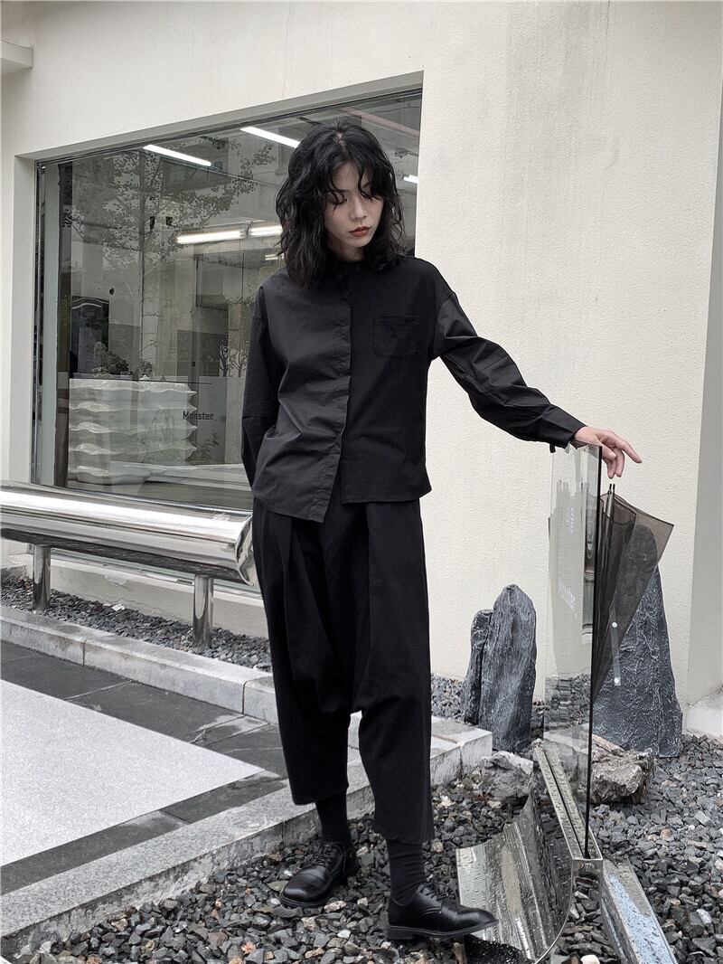 BLACK AND WHITEダークカジュアルパンツ、ビッグクロッチパンツ、バギーパンツ、ハーレムパンツ、デザインモデル、秋冬新作メンズ&レディース ホワイト ブラック オータム 秋物 ウィンター 冬物 BWTB24031354346