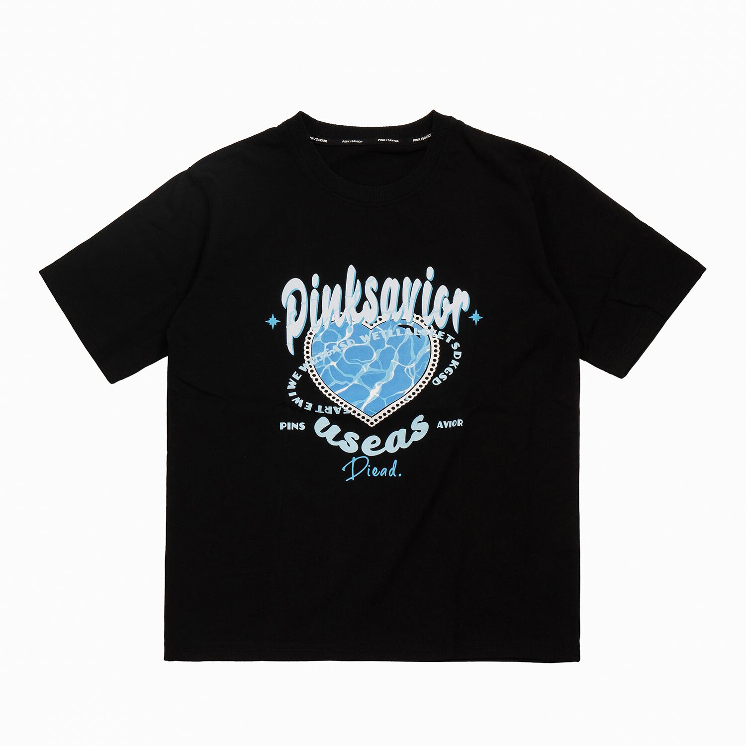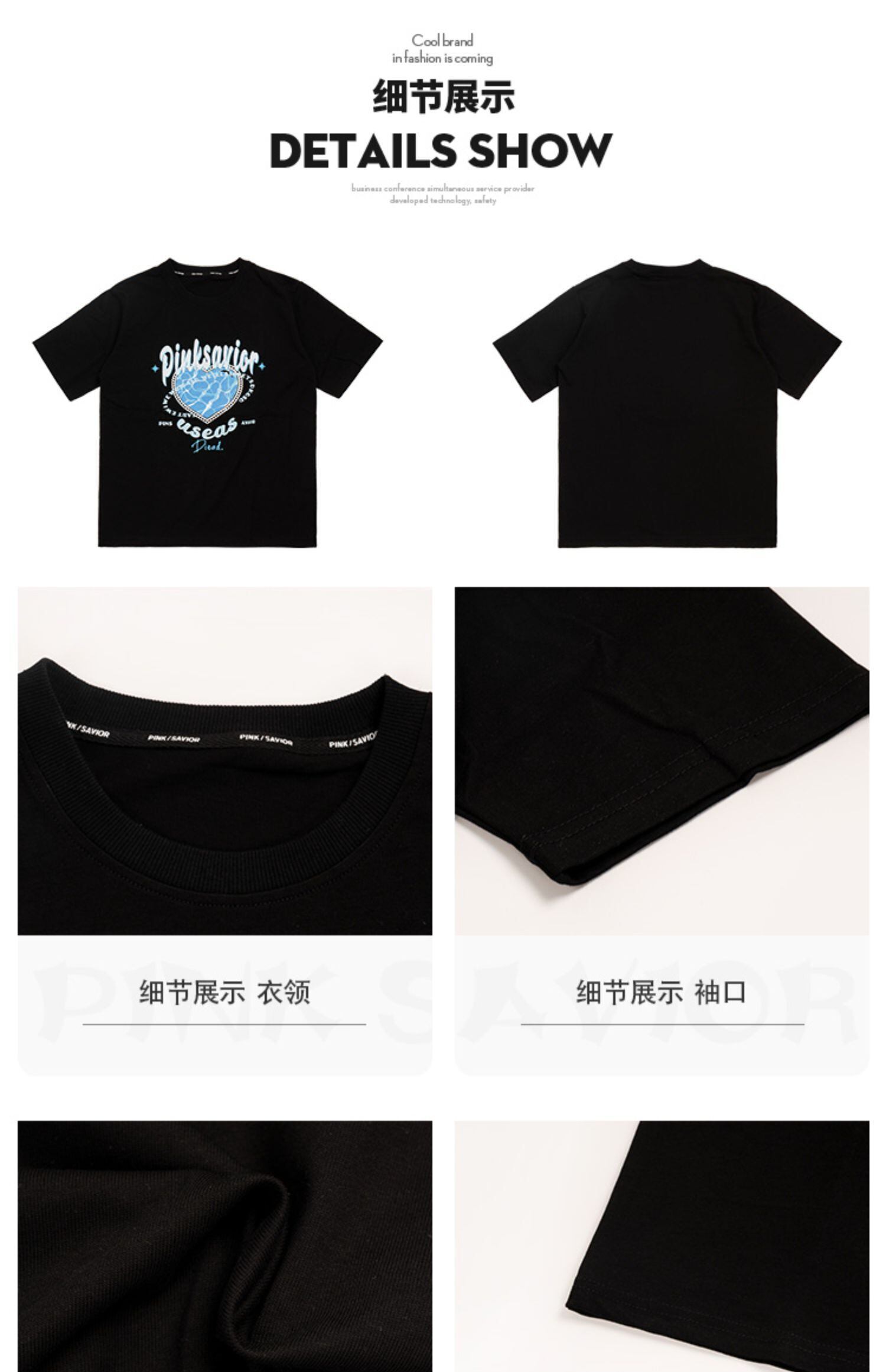 pinksavior[紺色の海]黒と白の綿のロマンチックな印刷夏のカジュアル21人の男性と女性の半袖 ショート ホワイト ブルー ブラック コットン ハーフスリーブ サマー 夏物 PSTB88660376188