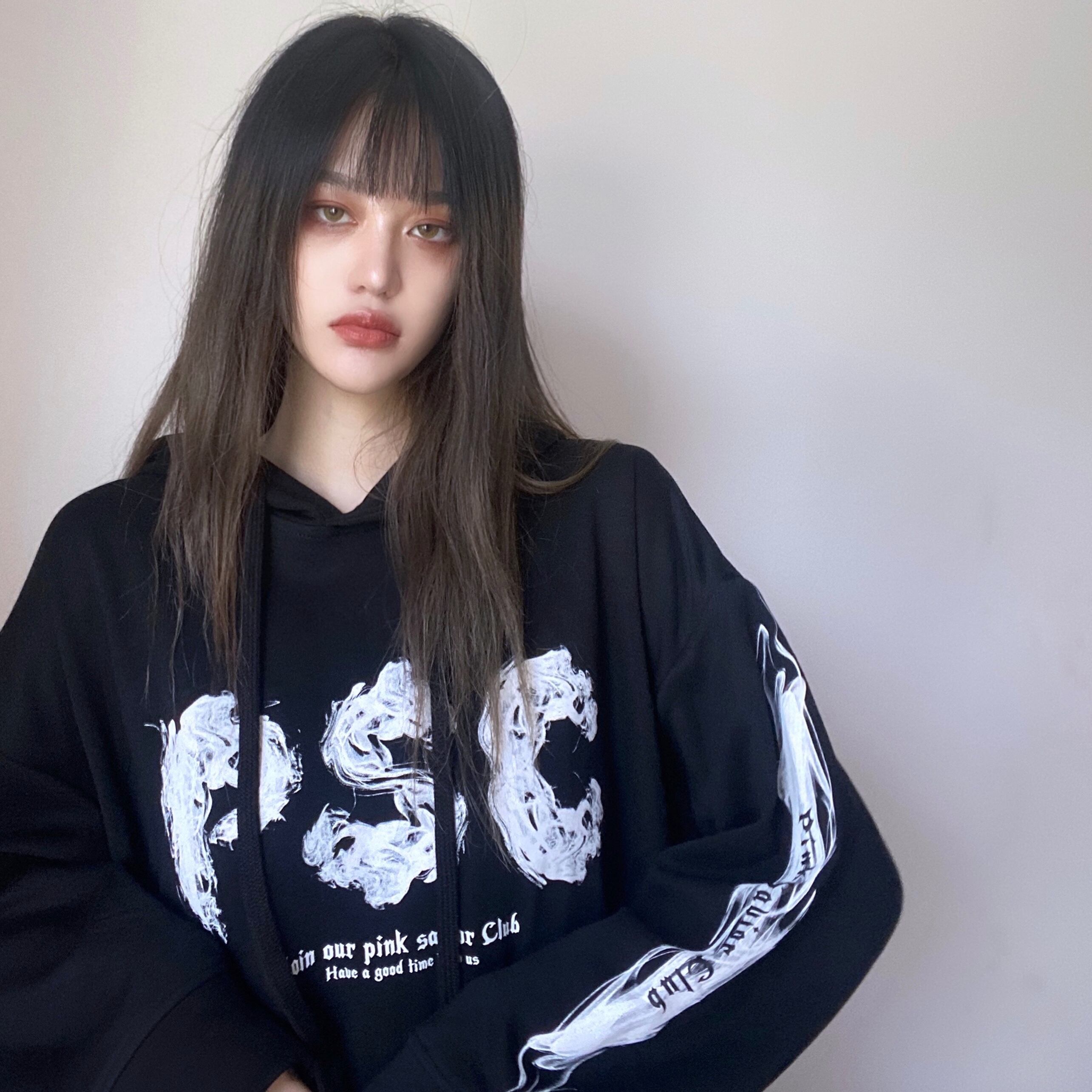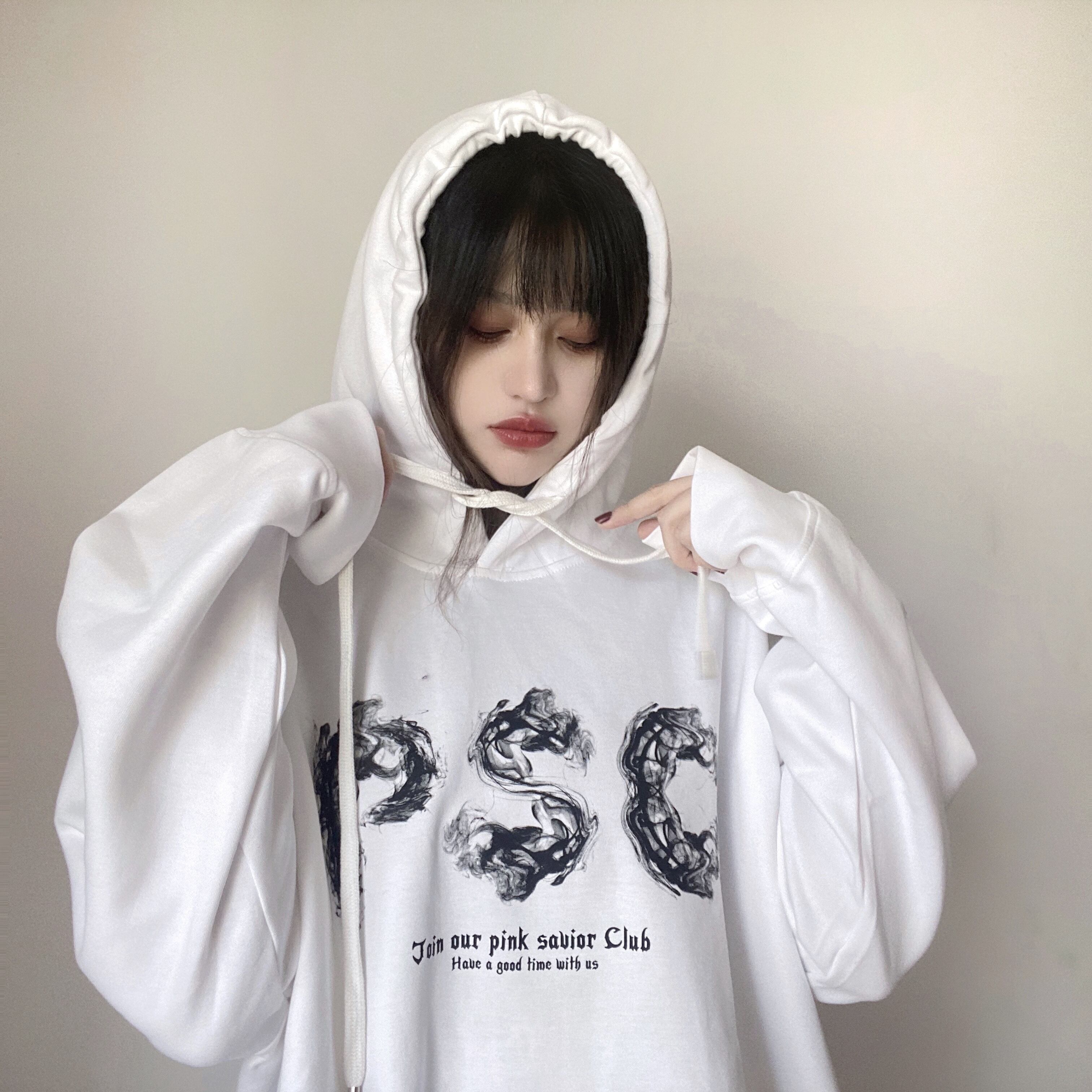 pinksaviorスモークPSCテーマデザイン初秋のフード付き黒と白のボトムスがない綿のセーター ホワイト ブラック コットン オータム 秋物 PSTB3662620626