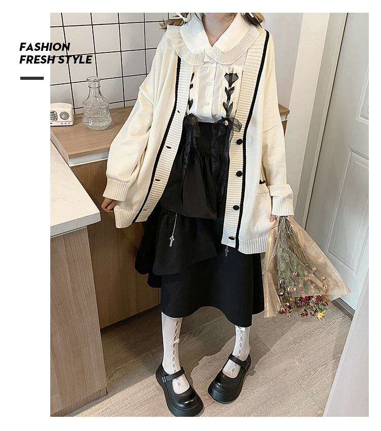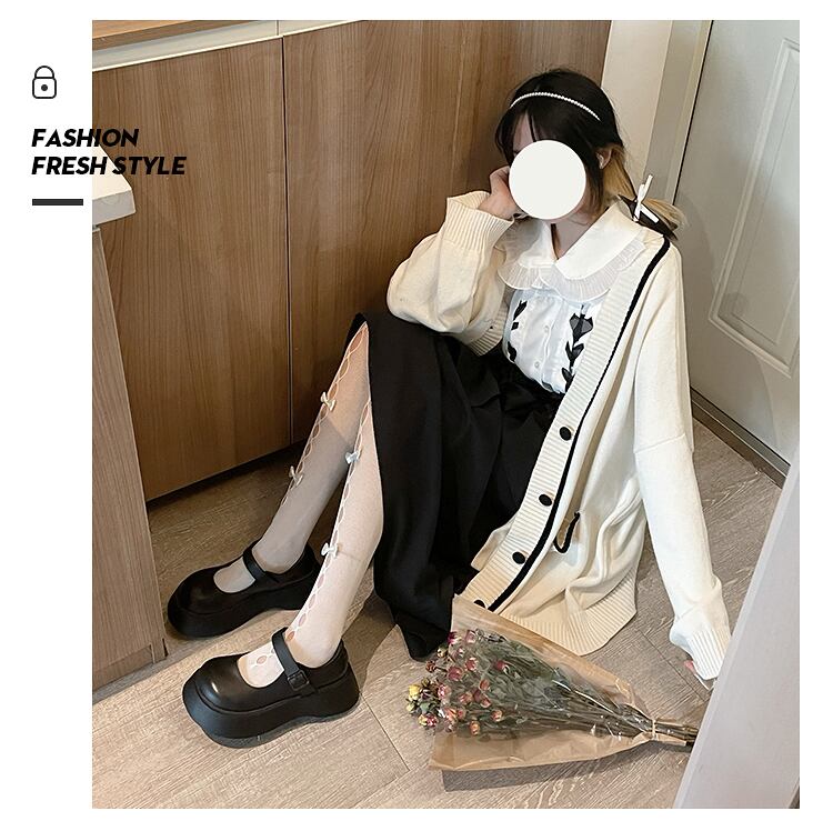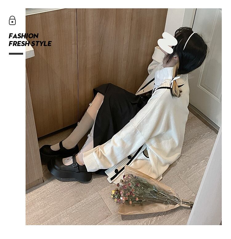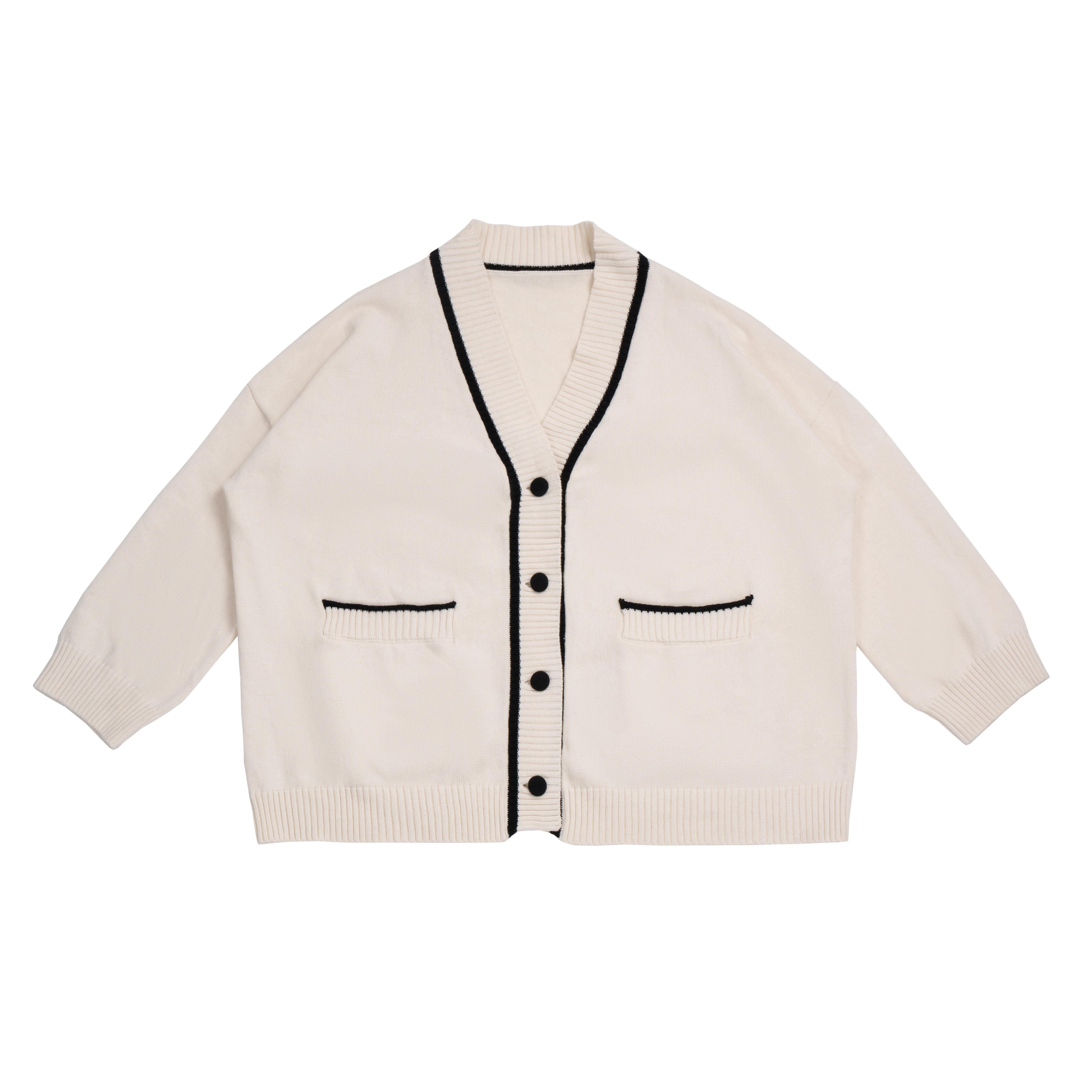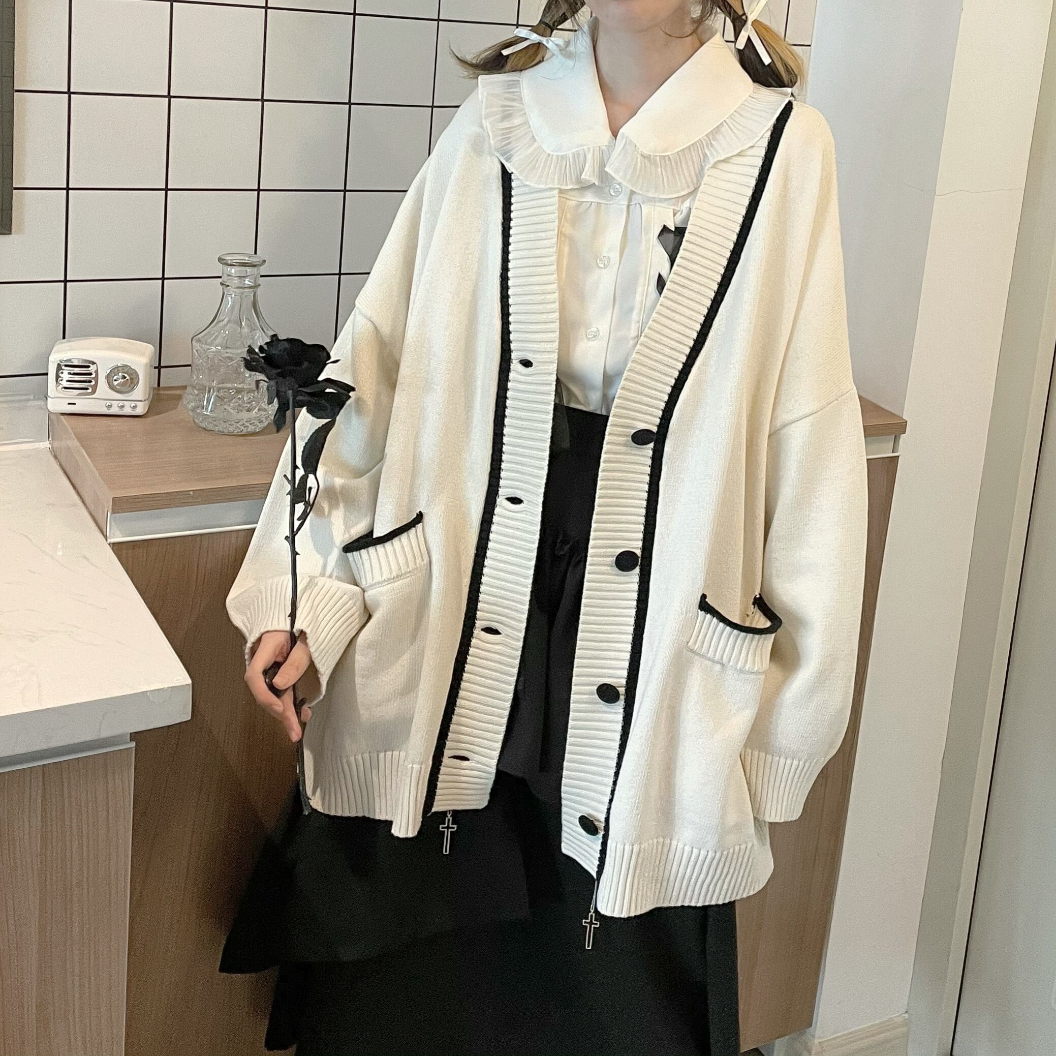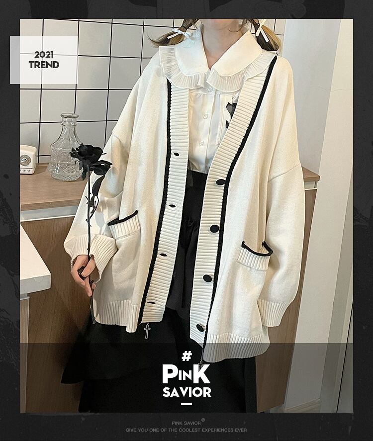 pinksavior春風ソフトミドル丈白黒コントラストカラーカレッジセーターカーディガン ホワイト ブラック スプリング 春物 PSTB72592497531