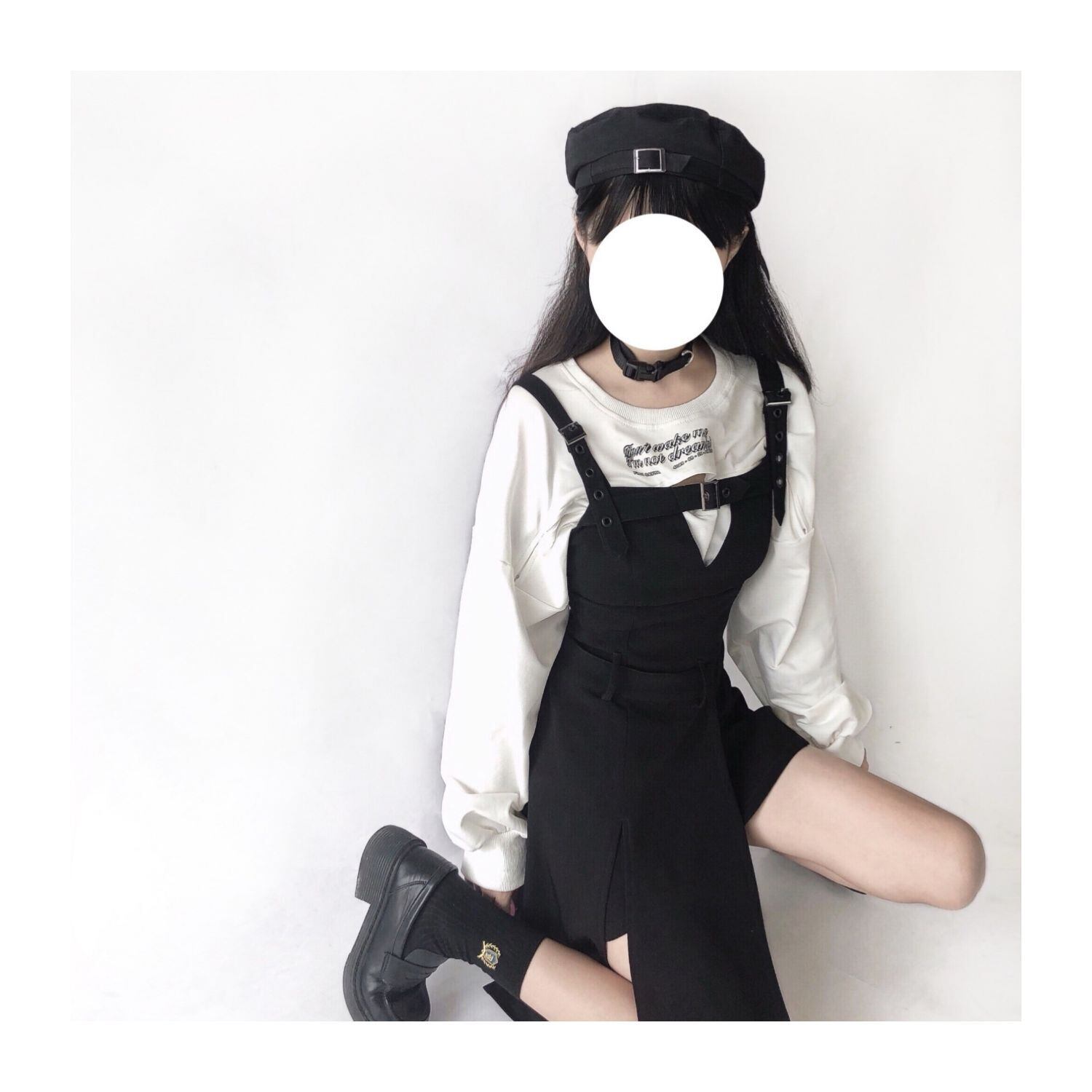 色:ブラックサスペンダースカート,黒いセーター,白いセーター