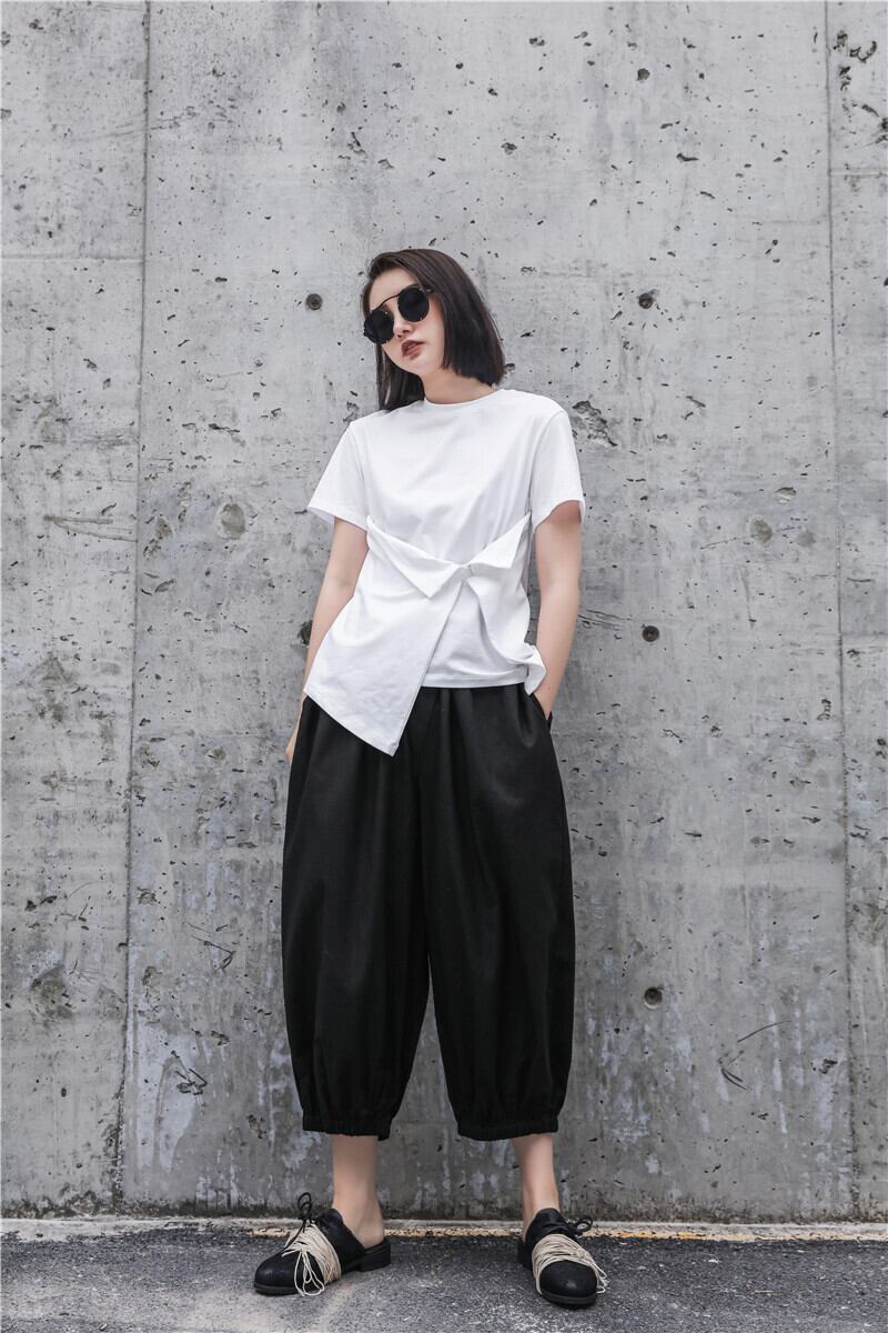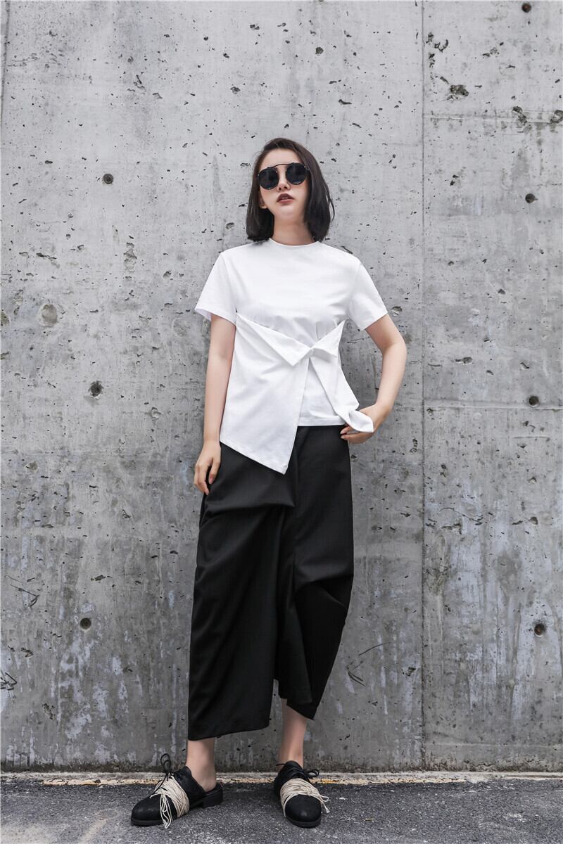 BLACK ANDWHITE香港スタイルのイレギュラーTシャツレディースピュアコットン無地半袖スリムトップ ホワイト ブラック ソリッドカラー BWTB14872295465