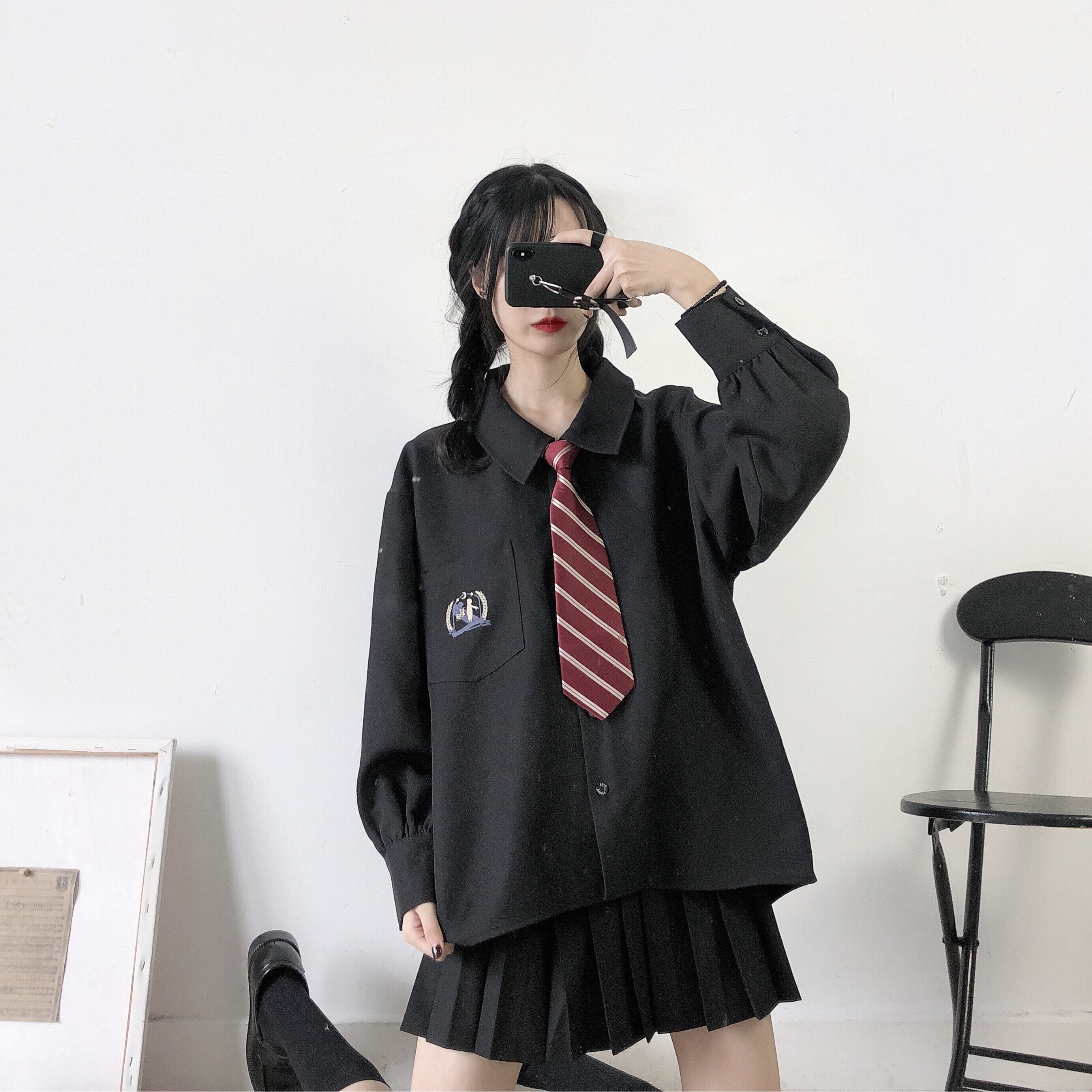 pinksaviorリトルプリンス黒、白、グレーの3色ルーズ長袖シャツ女性秋冬トップス(フリーネクタイ) ロング ホワイト ブラック オータム 秋物 ウィンター 冬物 PSTB11352527447