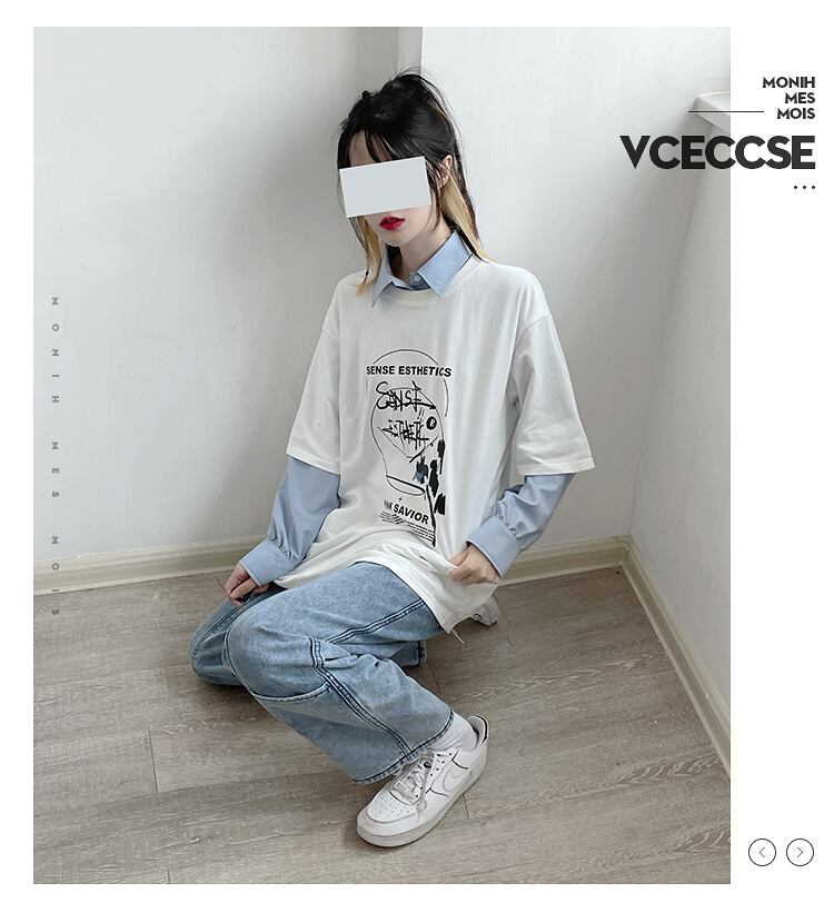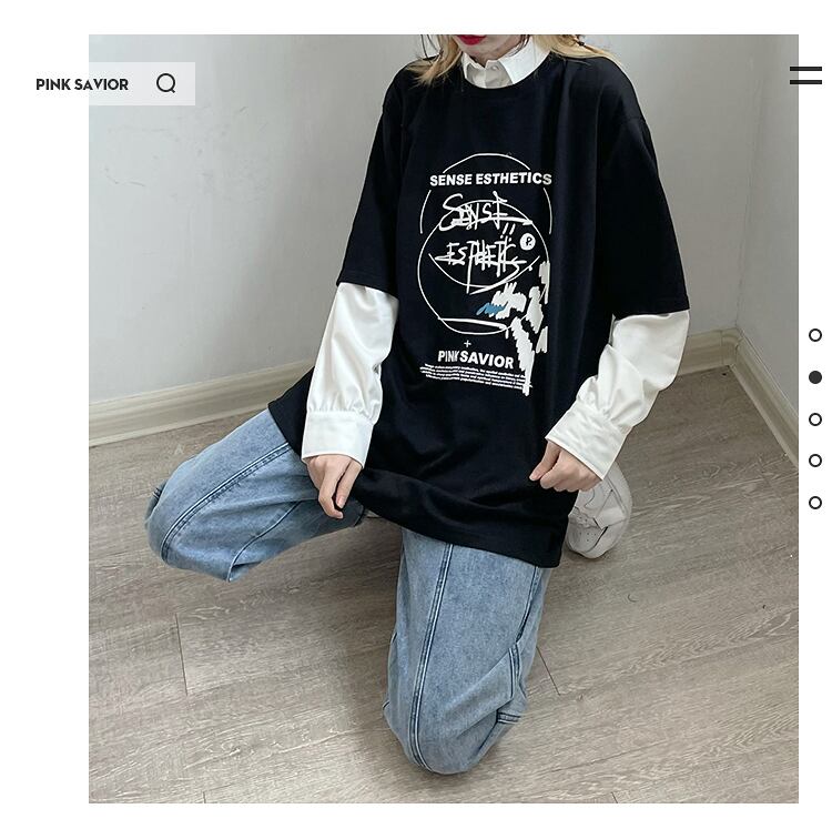 pinksavior逆さまの世界のポケットの装飾不規則な青と白のマッチングシャツ ホワイト ブルー PSTB62599784021