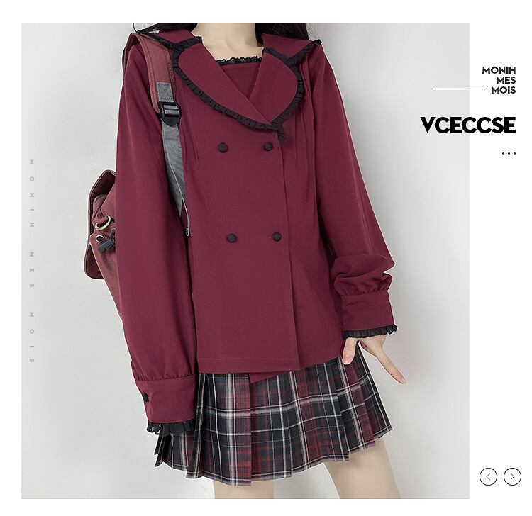 色:赤い丸首,赤いレースの襟,白い丸首,白いレースの襟