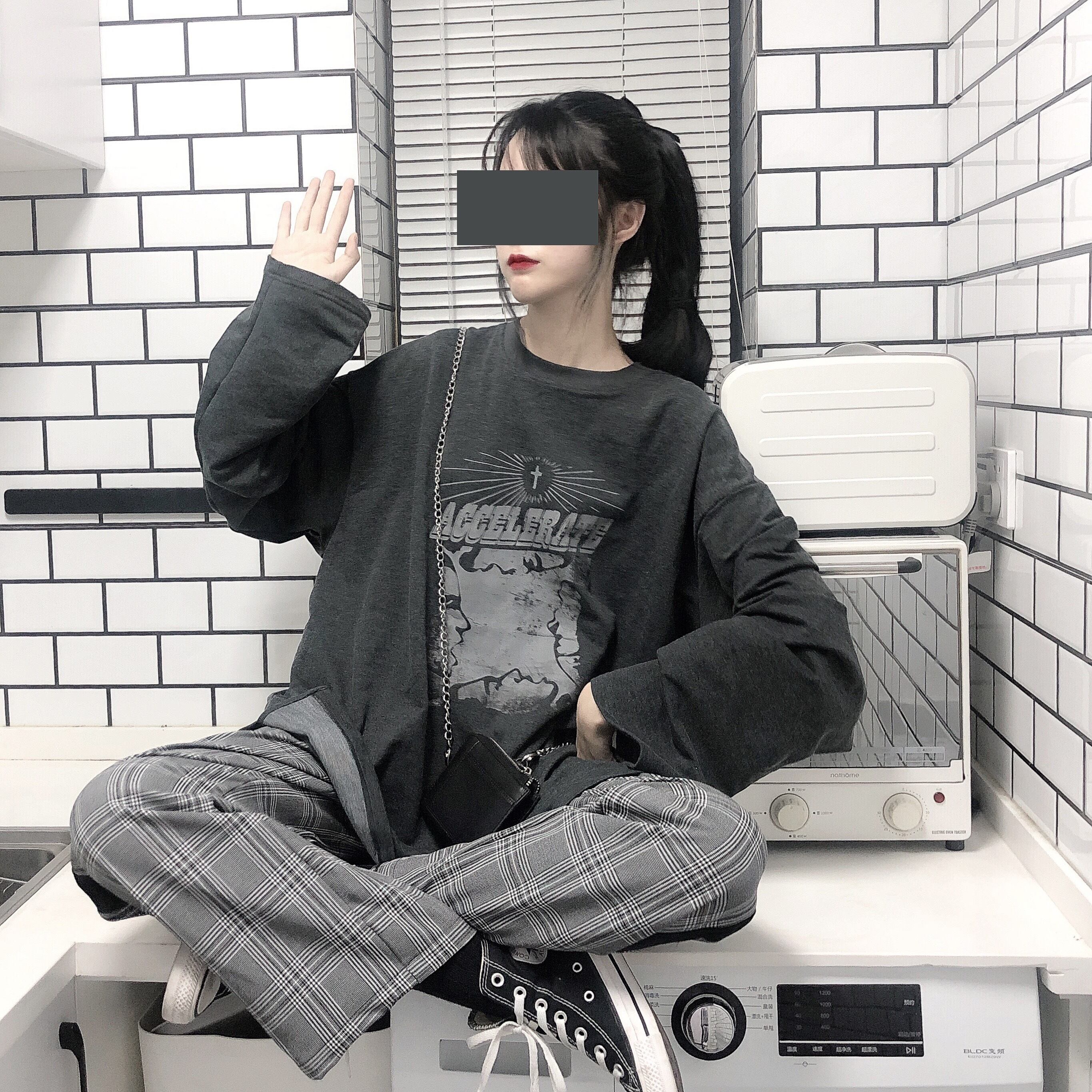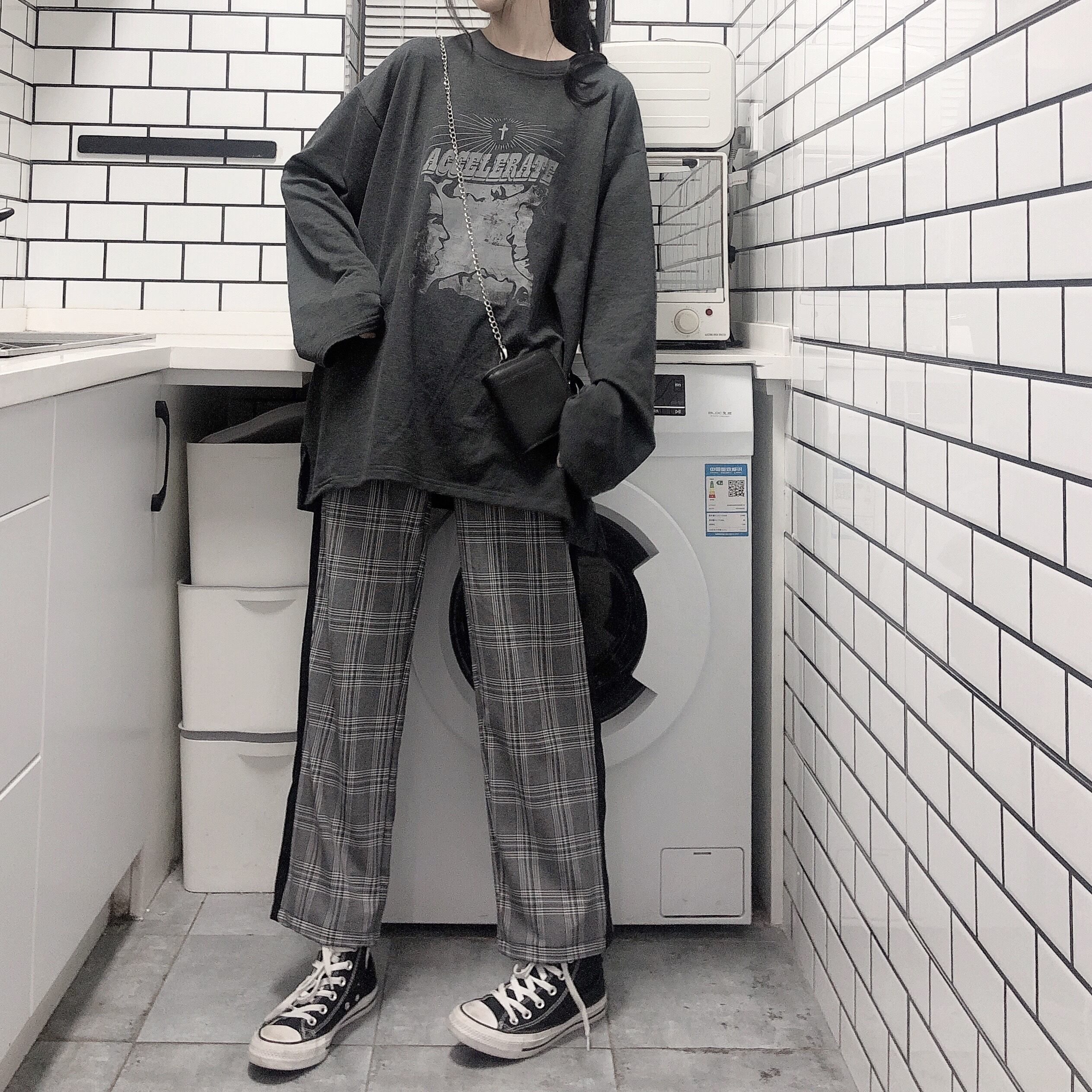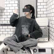 pinksaviorグレーレトロプリントルーズで薄いカジュアル学生長袖セーター女性の春と秋の薄いコート ロング スプリング 春物 オータム 秋物 PSTB28901173686