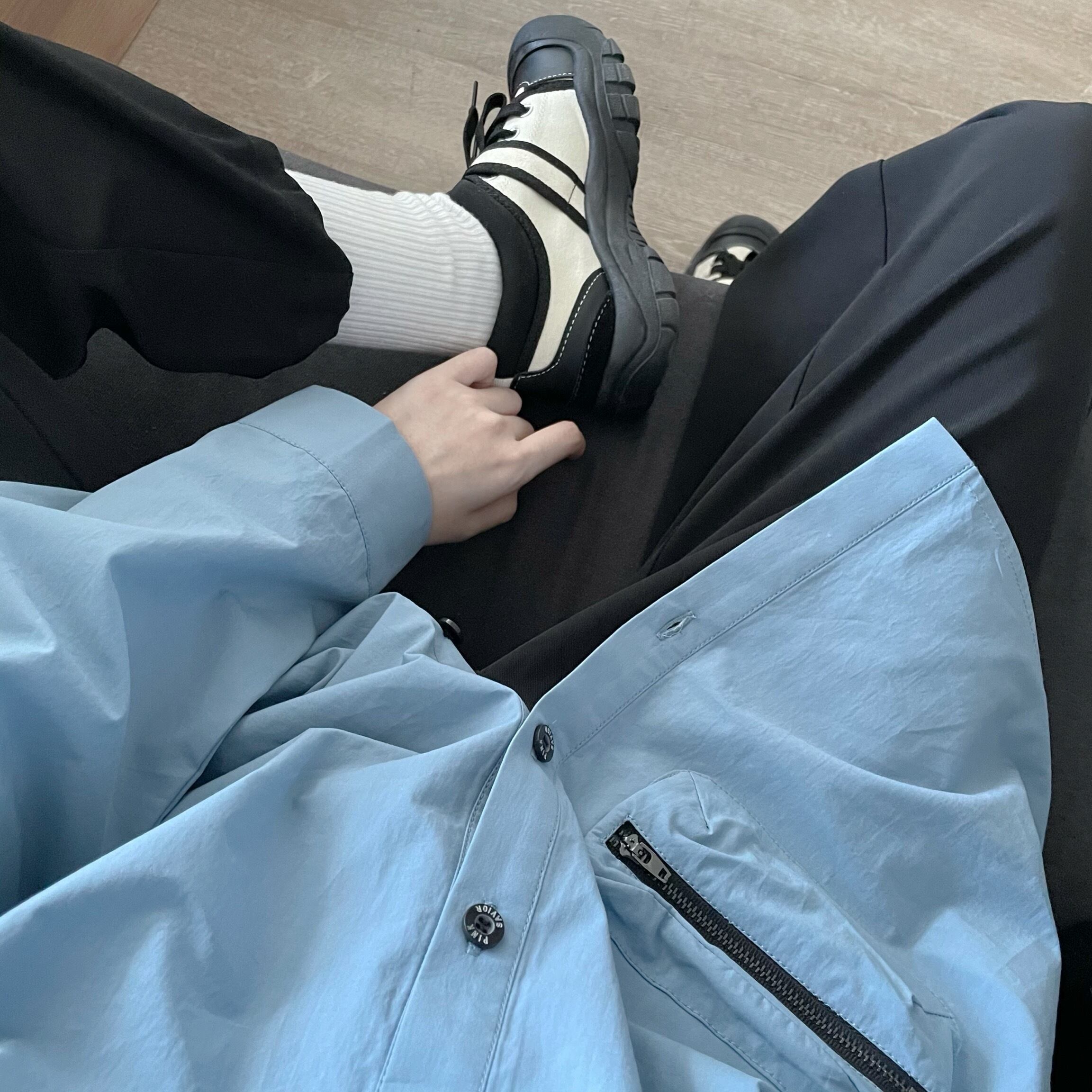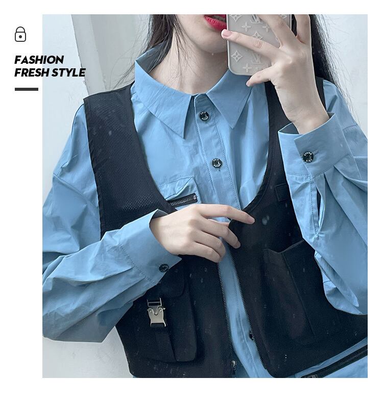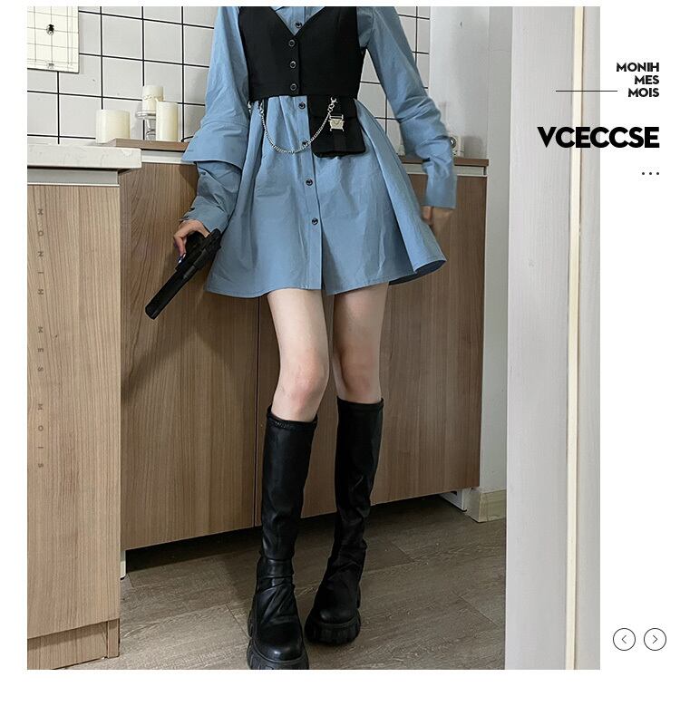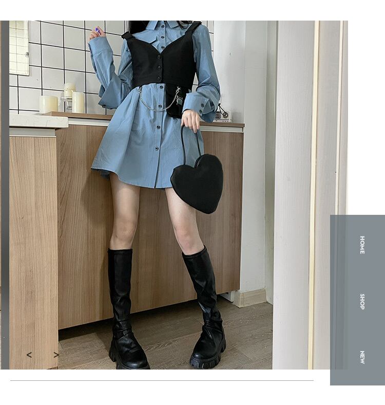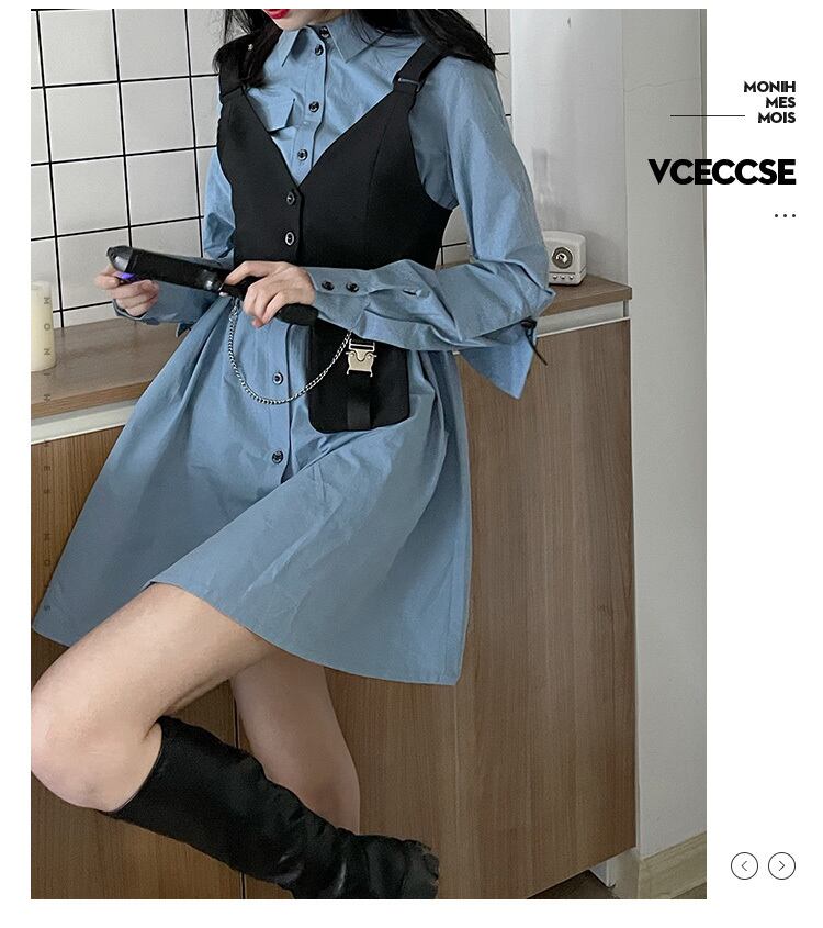 色:青いシャツドレス,青いシャツ,ズボン,ベスト,コルセットベスト