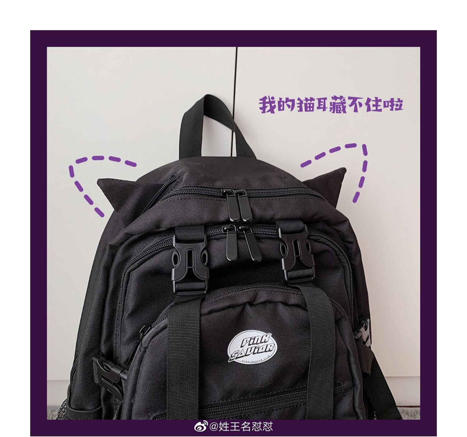 pinksavior隠された黒猫隠されたコロケーションバックパック ブラック リュック PSTB5488877848