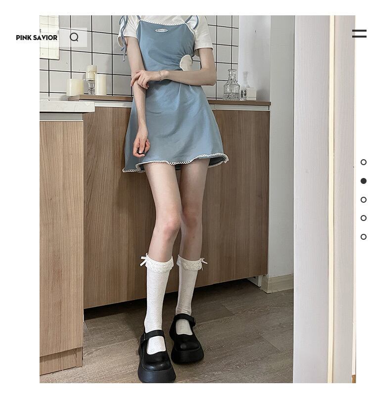 pinksaviorライムプリーツ日焼け止めシフォンサスペンダースカートフェイクツーピース夏と秋のスーツ サマー 夏物 オータム 秋物 PSTB25782288495