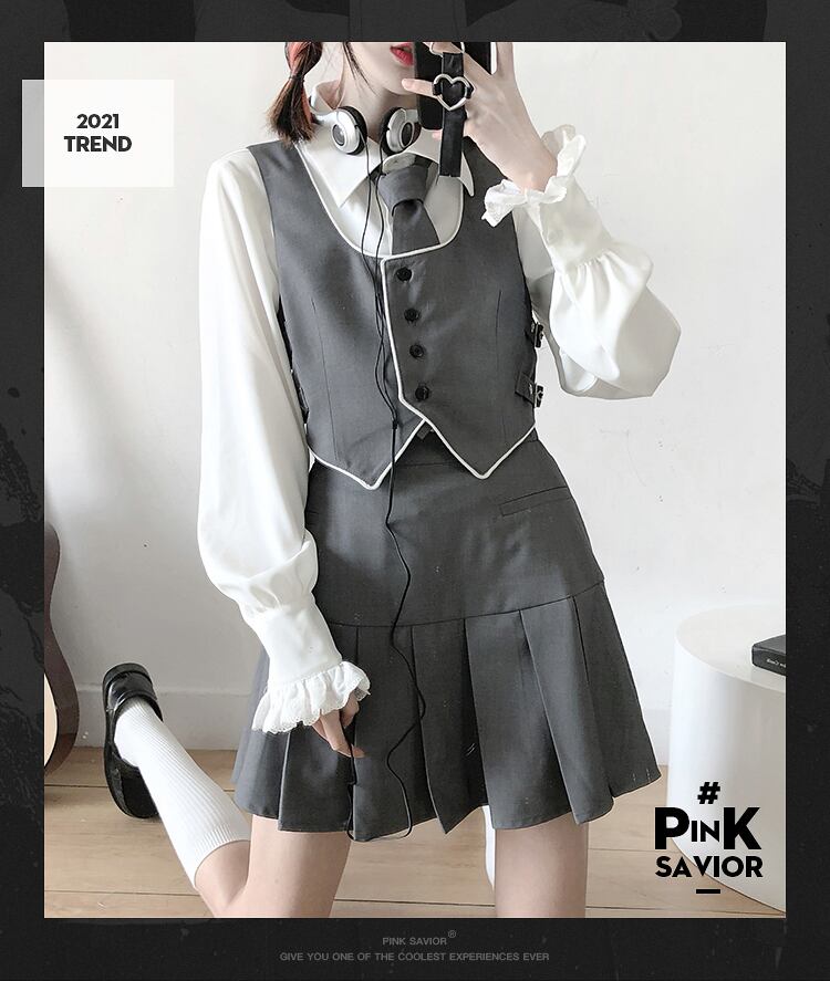 pinksavior [Ming ChuanGao]大学生カップルベストハーフスカートシャツスーツ卒業シーズンcl服 ピンク PSTB41721004299