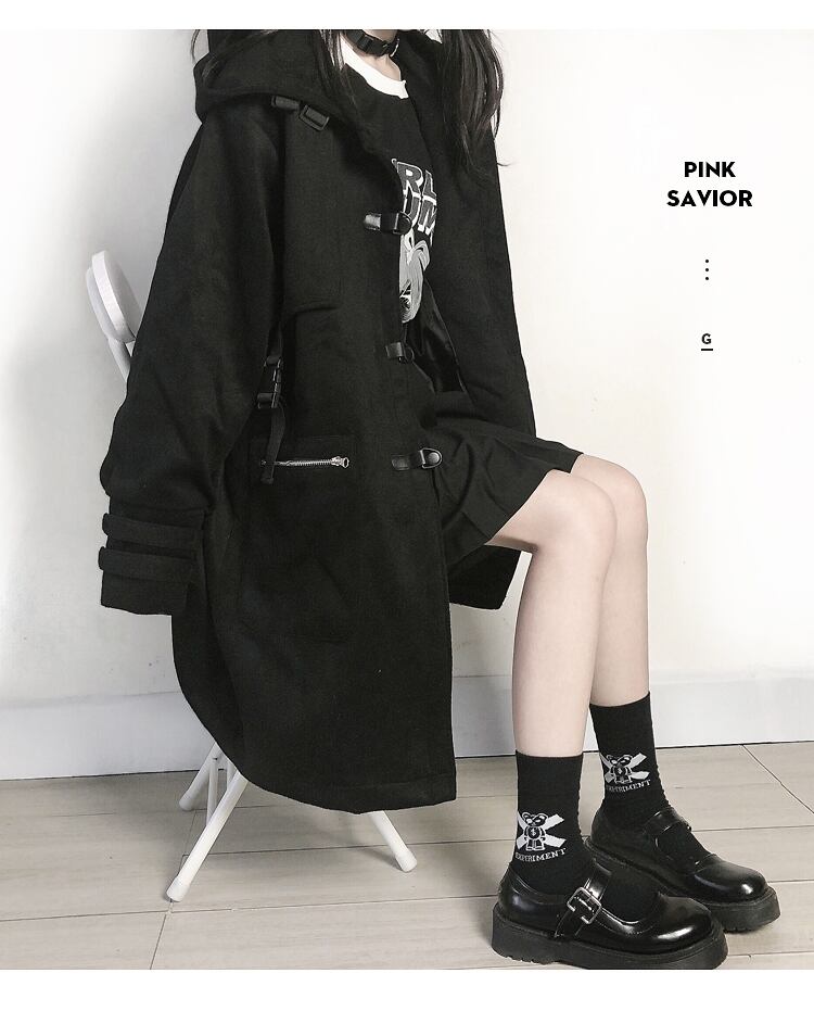 pinksavior秋と冬のウサギのイヤホンは、黒と白のルーズフード付きジャケットをウールにすることができます ホワイト ブラック オータム 秋物 ウィンター 冬物 PSTB92319692866