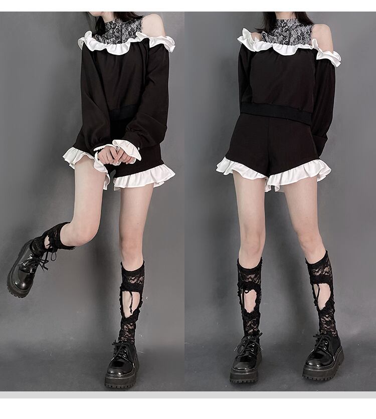pinksaviorレースワンショルダーレースデコレーショントップス+レースショーツ夏の小さな遊び心のあるスーツ サマー 夏物 ブルマー PSTB71120866265